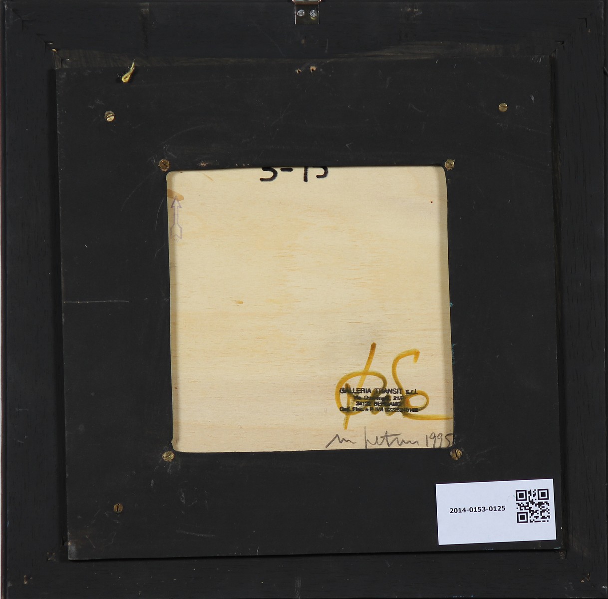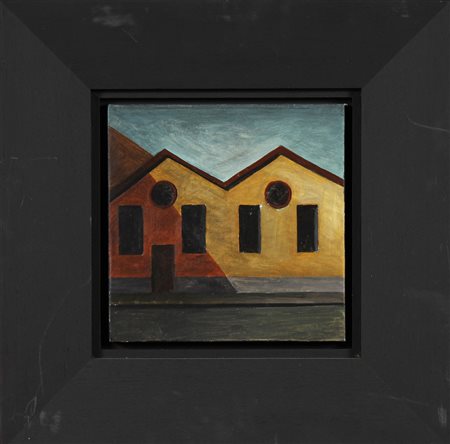 PETRUS MARCO (n. 1960) Senza titolo. 1995. Olio su tela su tavola. Cm 19,00 x 19,00. Al retro firma anno e timbro della Galleria Transit, Bergamo, firmato da Donato Locatelli. Cornice presente