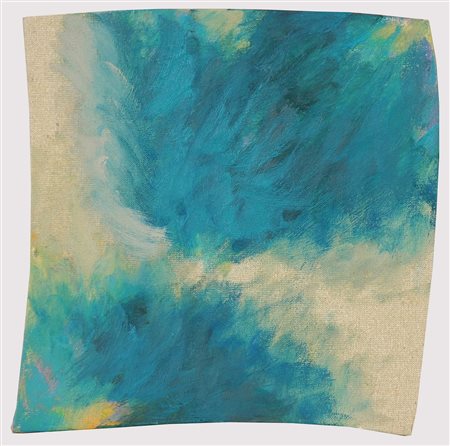 SHIMIZO TETSURO (n. 1958) Senza titolo. 1995. Olio su tela su tavola. Cm 19,00 x 19,00. Firma anno e timbro della Galleria Transit, Bergamo, firmato da Donato Locatelli.