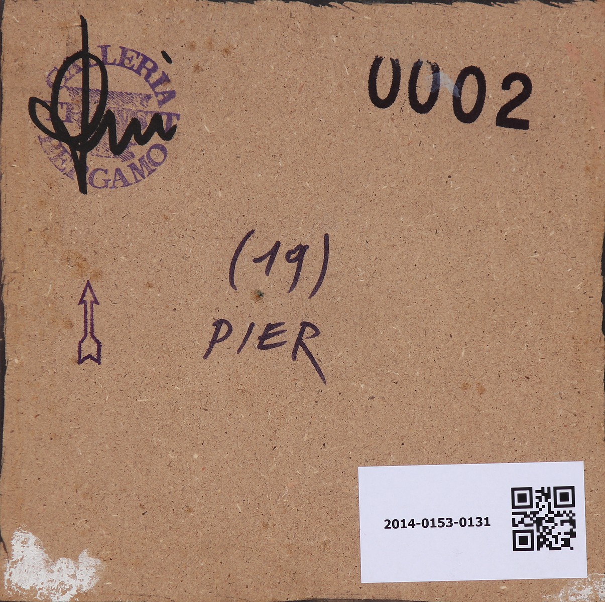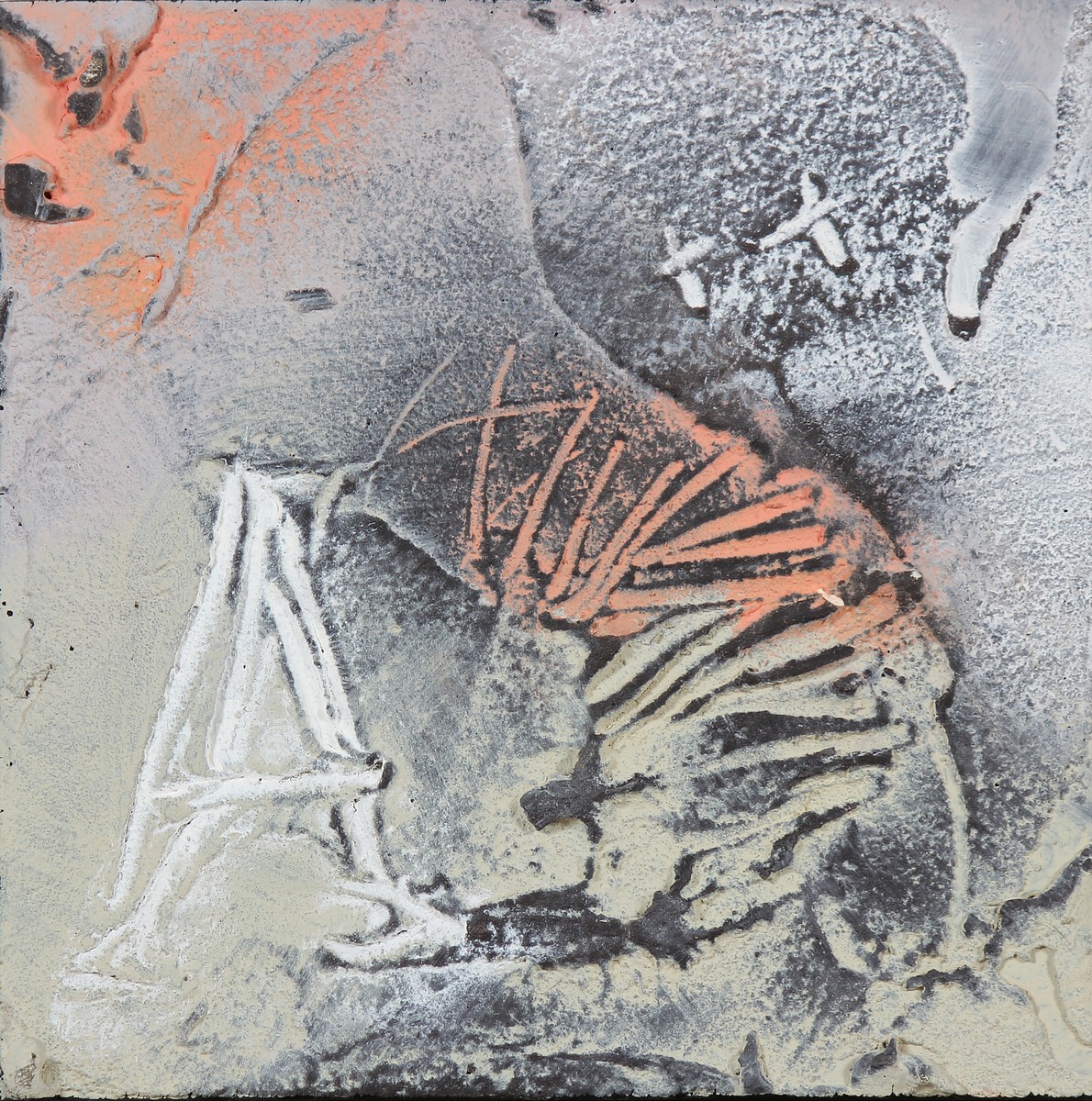 TOFFOLETTI PIER (n. 1957) Senza titolo. Tecnica mista su tavola. Cm 19,00 x 19,00. Al retro firma e timbro della Galleria Transit, Bergamo, firmata da Donato Locatelli.