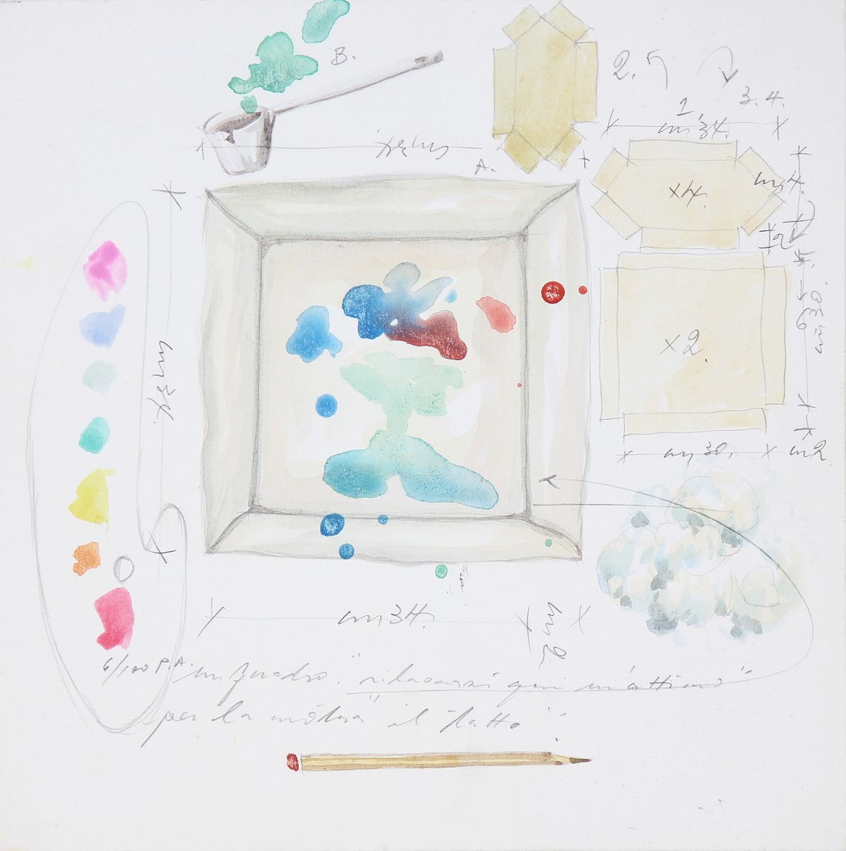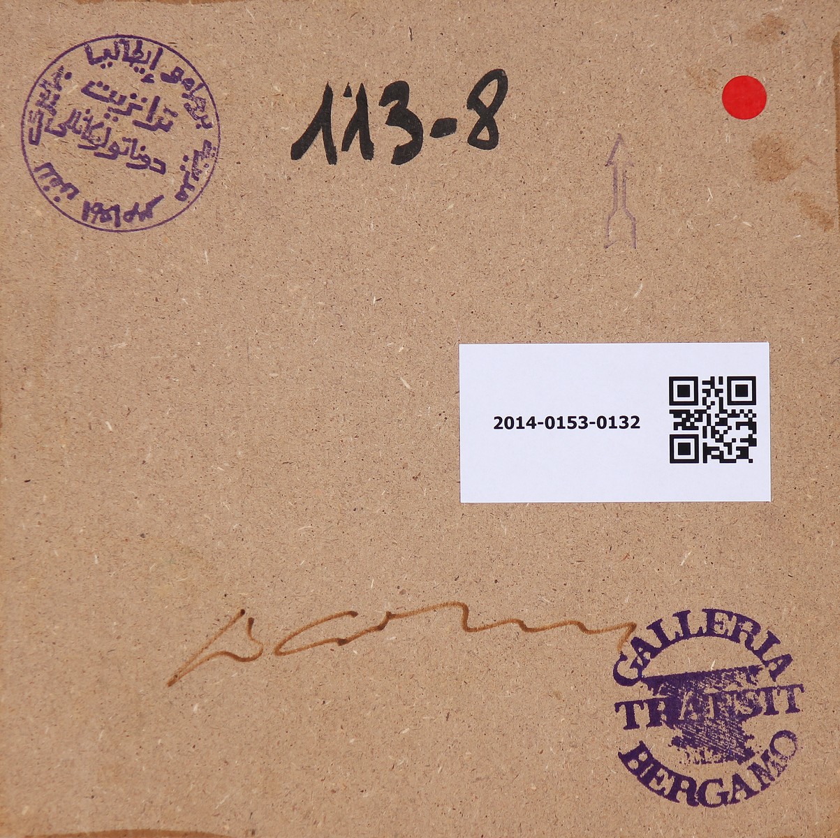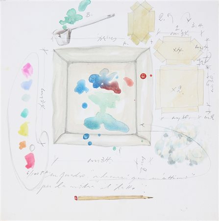 GALBUSERA RENATO (n. 1950) Senza titolo. Tecnica mista su tela su tavola. Cm 19,00 x 19,00. Al retro firma e timbro della Galleria Transit, Bergamo, firmata da Donato Locatelli.