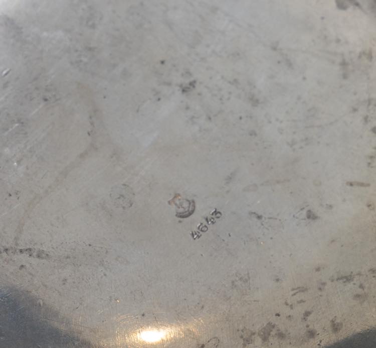 Servizio da tè e caffè in metallo argentato e vassoio, Orfèvrerie Gallia, Francia caffettiera cm 21x17, teiera cm 12,5x20,5, zuccheriera cm 10x14, vassoio cm 28x5x49,5. Sotto la base recano punzoni Orfèvrerie Gallia 4643 4643 8. Il vassoio reca punzone Orfèvrerie Gallia 4591