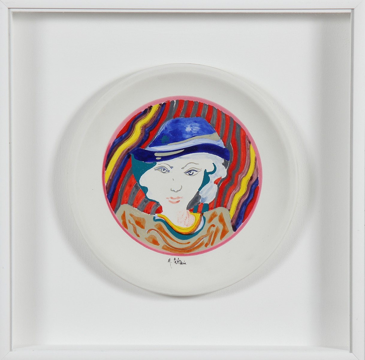 CESTARI MARIO (n. 1943) Volto di donna. Tecnica mista su ceramica. Cm 20,00....