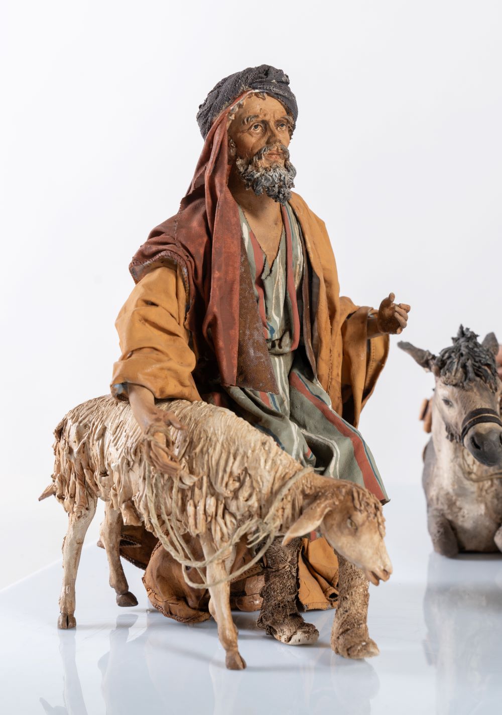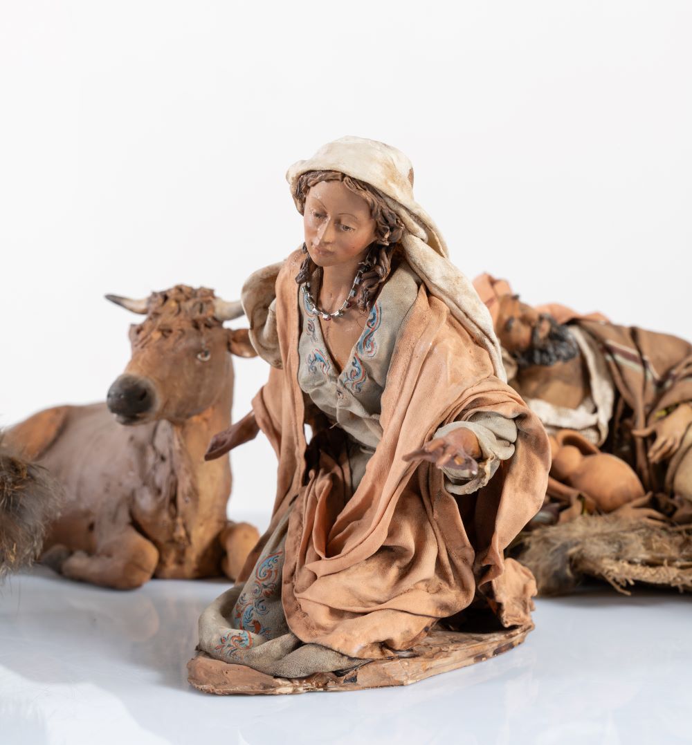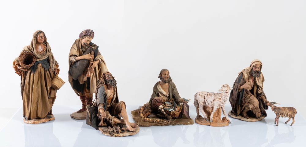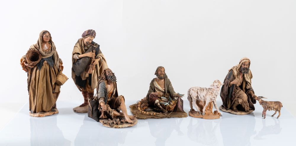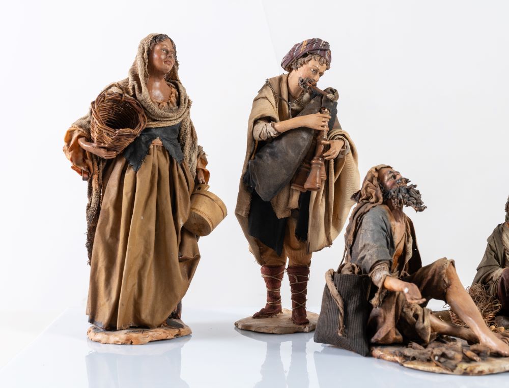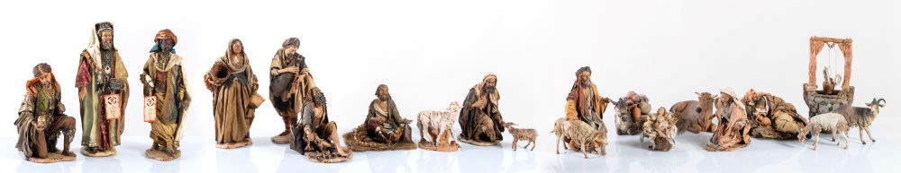 Grande lotto di figure di presepe. Da cm. 11x13 a cm. 31x14. Di vario genere, in terracotta, cartapesta e stoffa. 17 esemplari di Angela Tripi (XXI secolo) e 2 di Roberto Barbato. (XXI secolo).