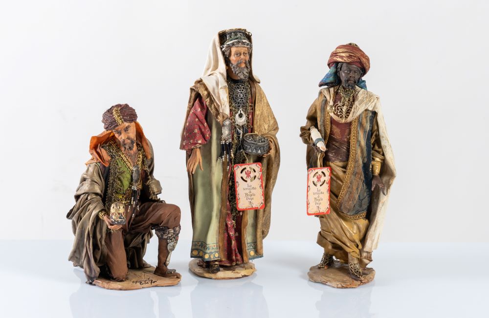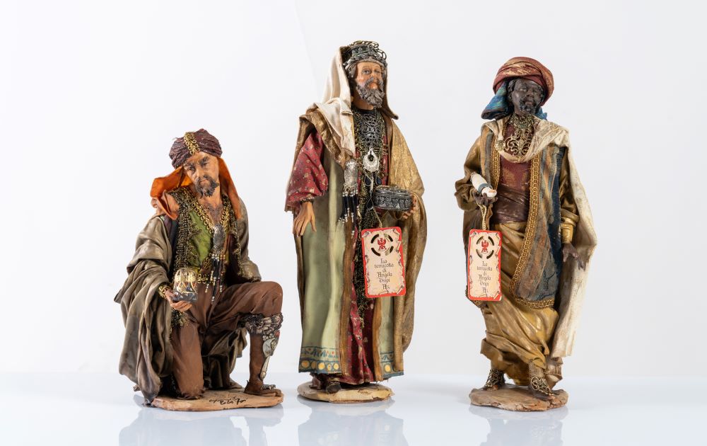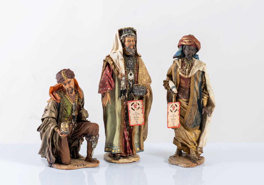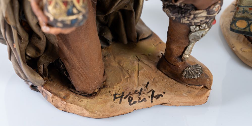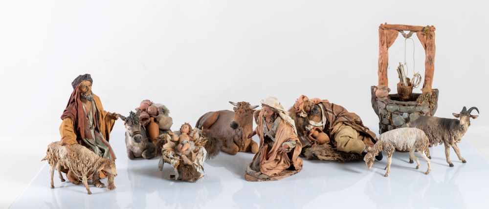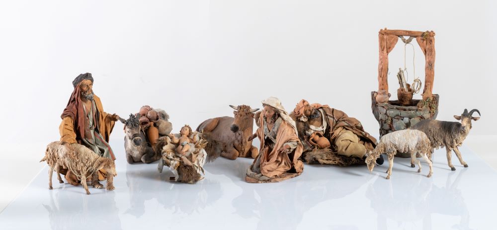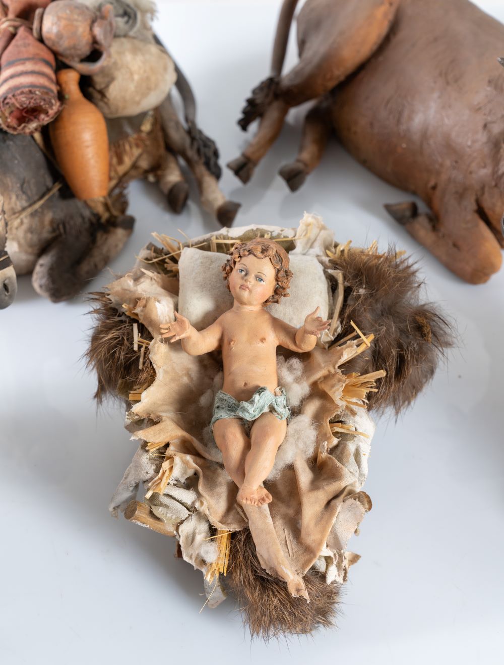 Grande lotto di figure di presepe. Da cm. 11x13 a cm. 31x14. Di vario genere, in terracotta, cartapesta e stoffa. 17 esemplari di Angela Tripi (XXI secolo) e 2 di Roberto Barbato. (XXI secolo).
