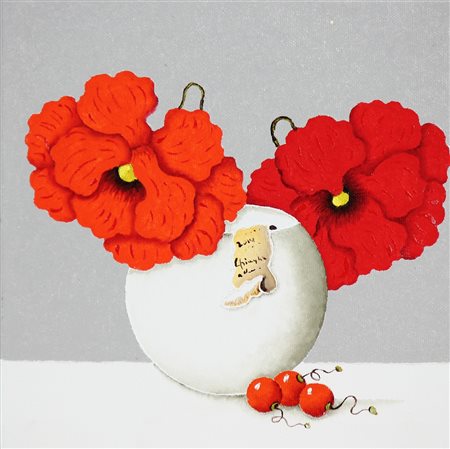 CHINAGLIA LUCIANO (n. 1951) Piccolo vaso di fiori. 2014. Olio su tela . Cm 25,00 x 25,00 x 5,00. Al retro firma, titolo e anno.