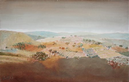 MANENTI DANILO (n. 1951) Studio per paesaggio (collina). 2001. Olio su tela . Cm 55,00 x 35,00. Firma in basso a sinistra. Autentica dell'artista su fotografia come da documentazione fotografica allegata.