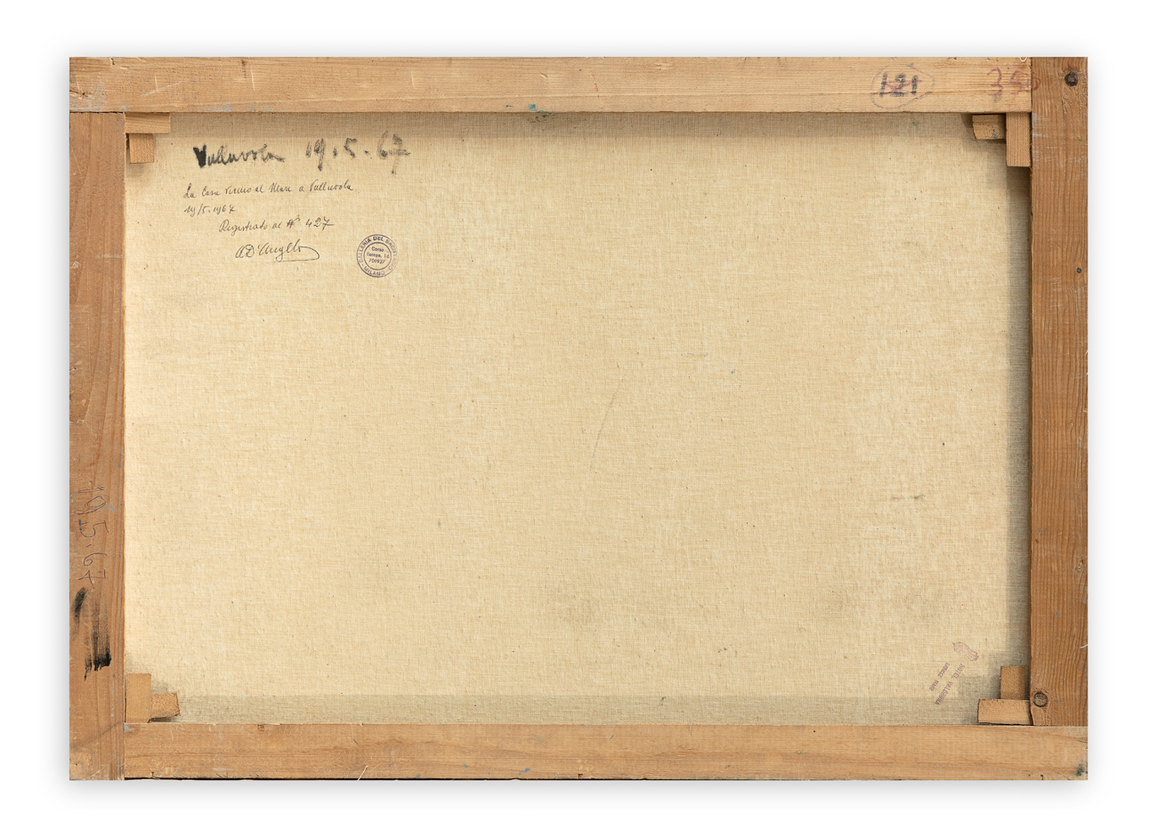 Firma, titolo, località, datazione e numero di archiviazione al retro