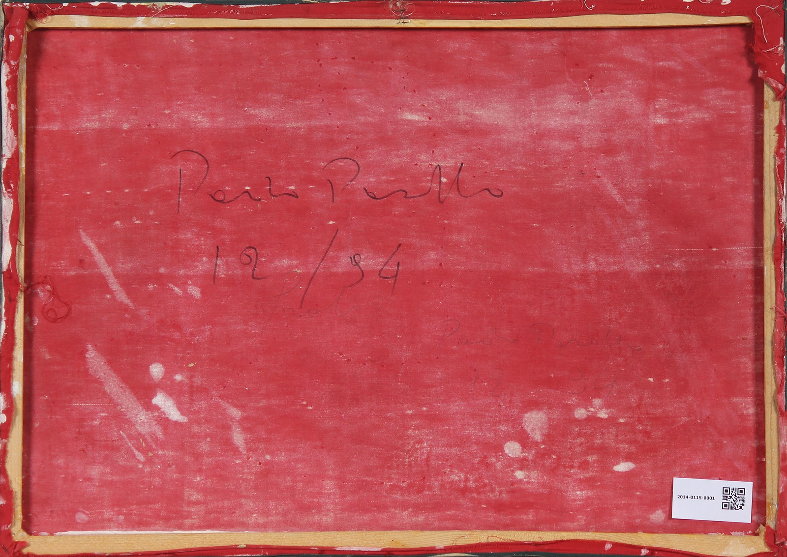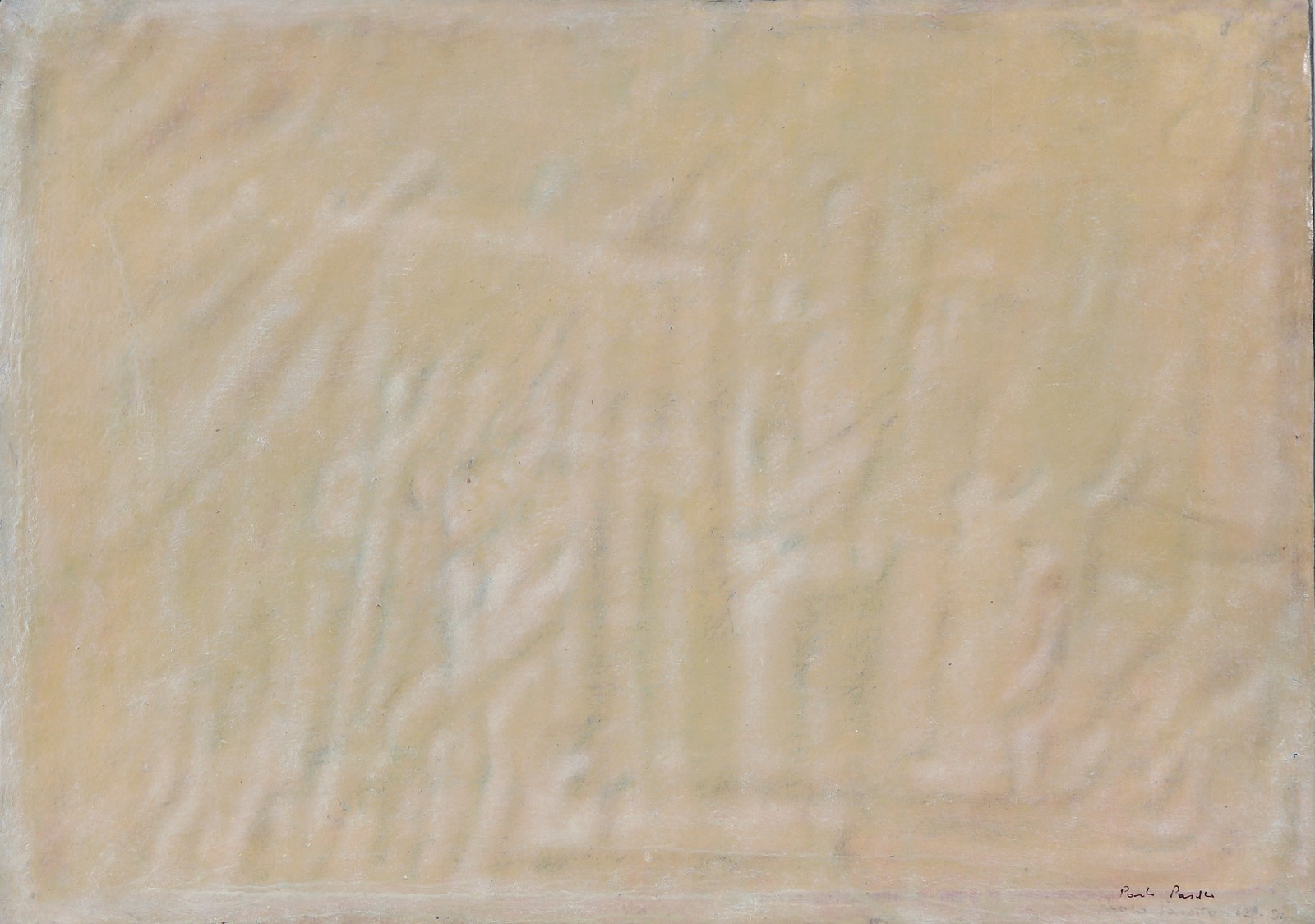 PASOTTO PAOLO (n. 1930) Senza titolo. 1994. Olio su tela. Cm 70,00 x 50,00. Firma in basso a destra. Al retro firma e data. Tela colorata di rosso.
