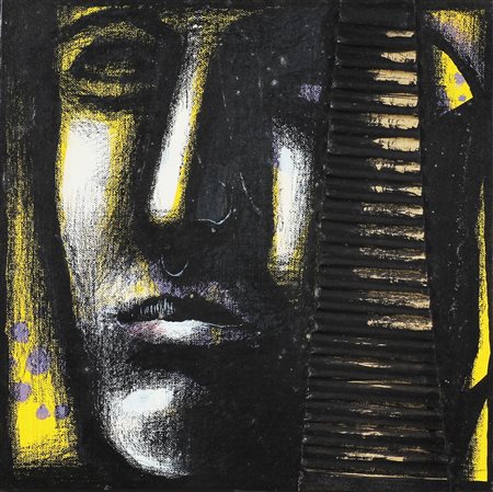 GALBUSERA RENATO (n. 1950) Senza titolo. tecnica mista su tela applicata su tavola. Cm 19,00 x 19,00. Al retro firma e timbro Galleria Transit di Bergamo.