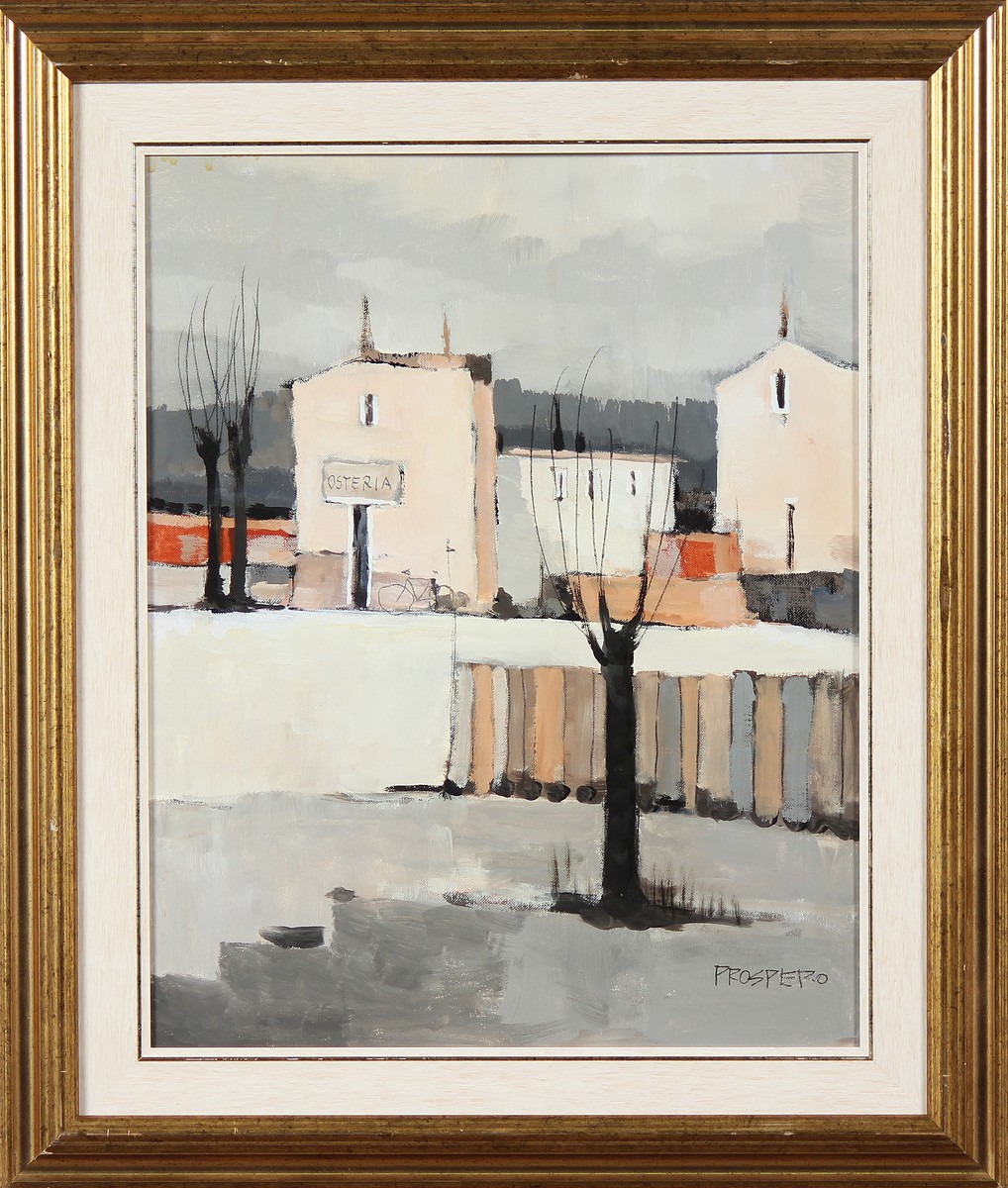 PROSPERO (n. 1931) Senza titolo. Olio su cartone. Cm 40,00 x 50,00. Firma in basso a destra. Cornice presente