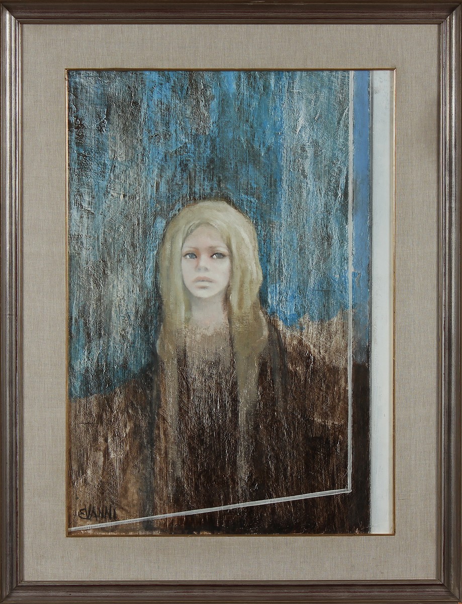 VANNI ERMANNO (n. 1930) Ritratto di bambina con i capelli biondi. Olio su tela . Cm 57,50 x 80,00. Firma in basso a sinistra. Cornice presente