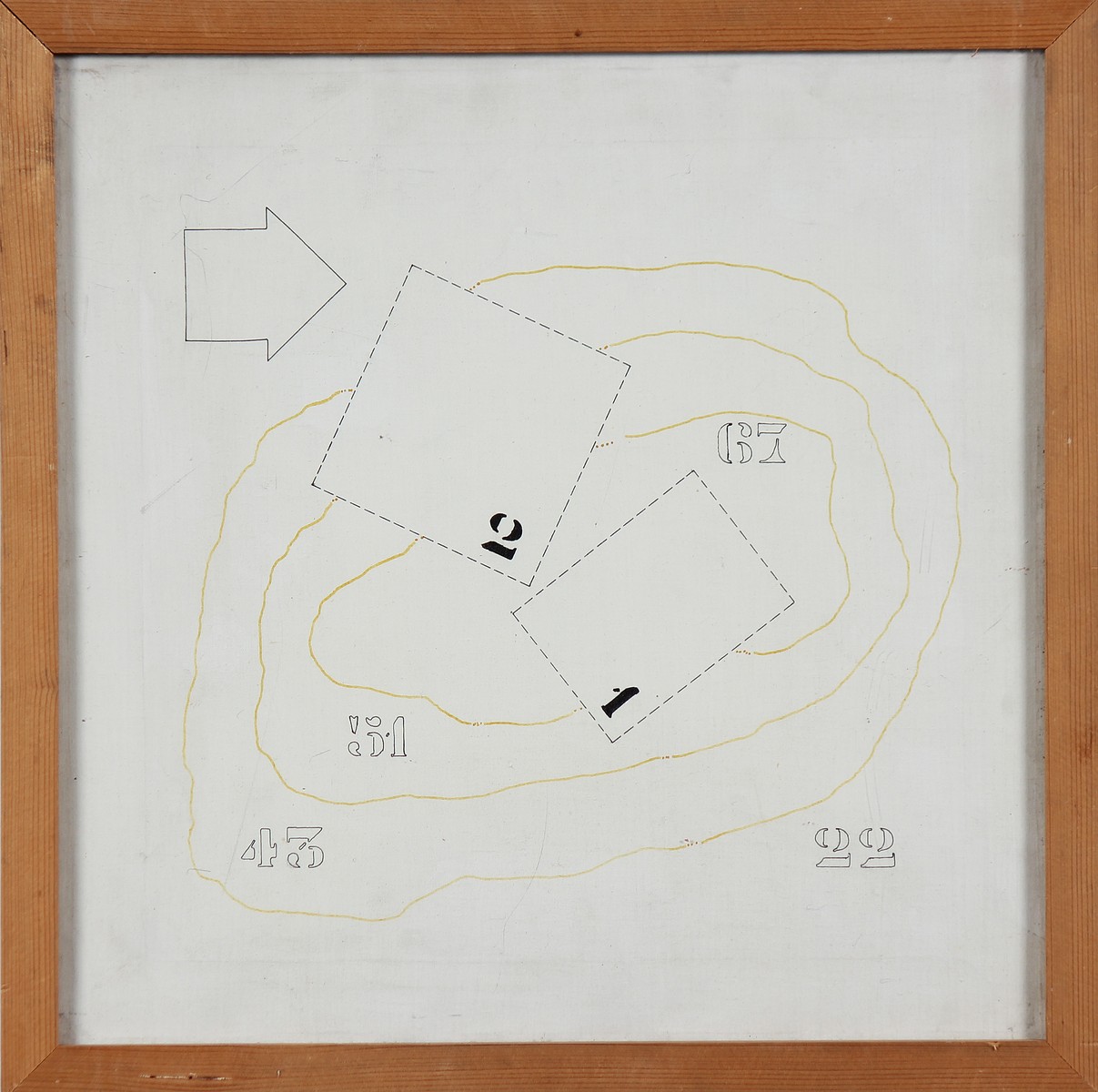 ANONIMO Fuori e dentro. Tecnica mista su tela. Cm 40,00 x 40,00. Al retro sulla cornice riporta la scritta: Luisella Carretta 1972 " Fuori e dentro", 7/20 esemplari unici. Cornice presente