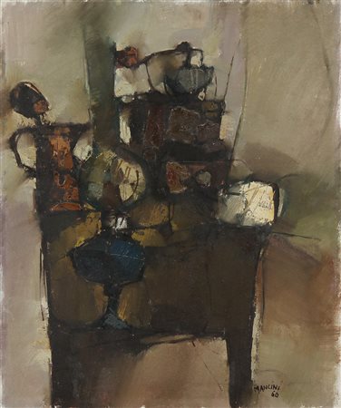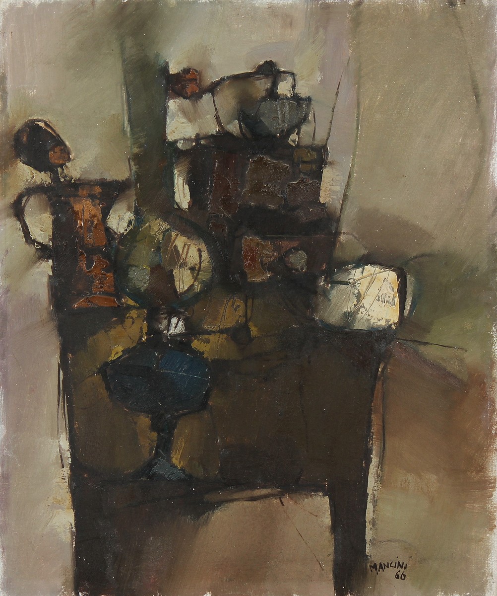 MANCINI PIERO (n. 1927) Senza titolo. 1966. Olio su tela . Cm 50,00 x 60,00. Firma e anno in basso a destra.