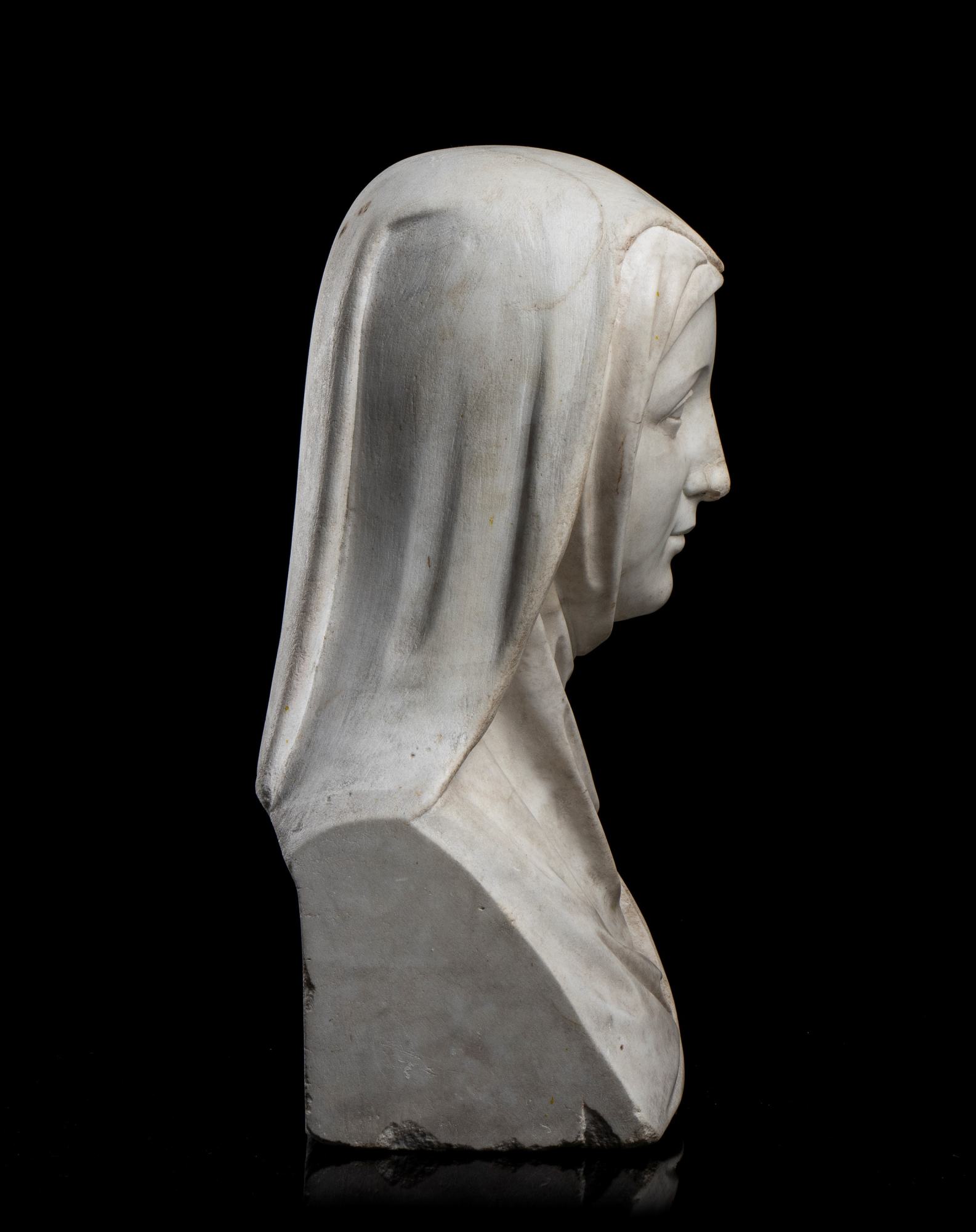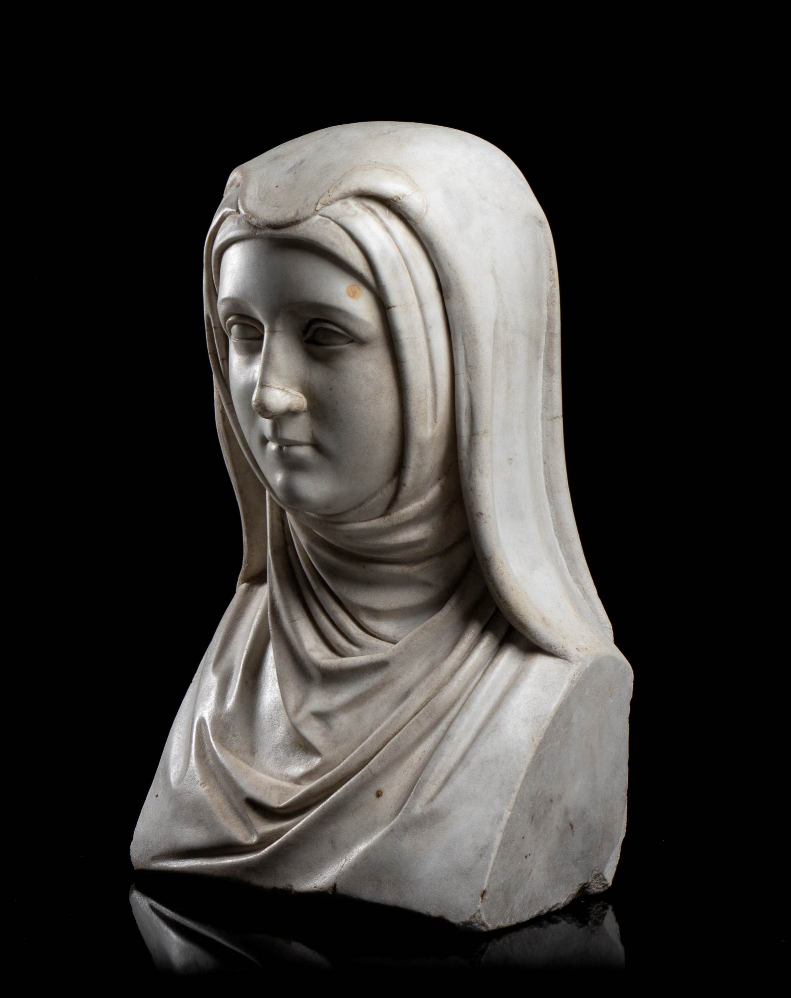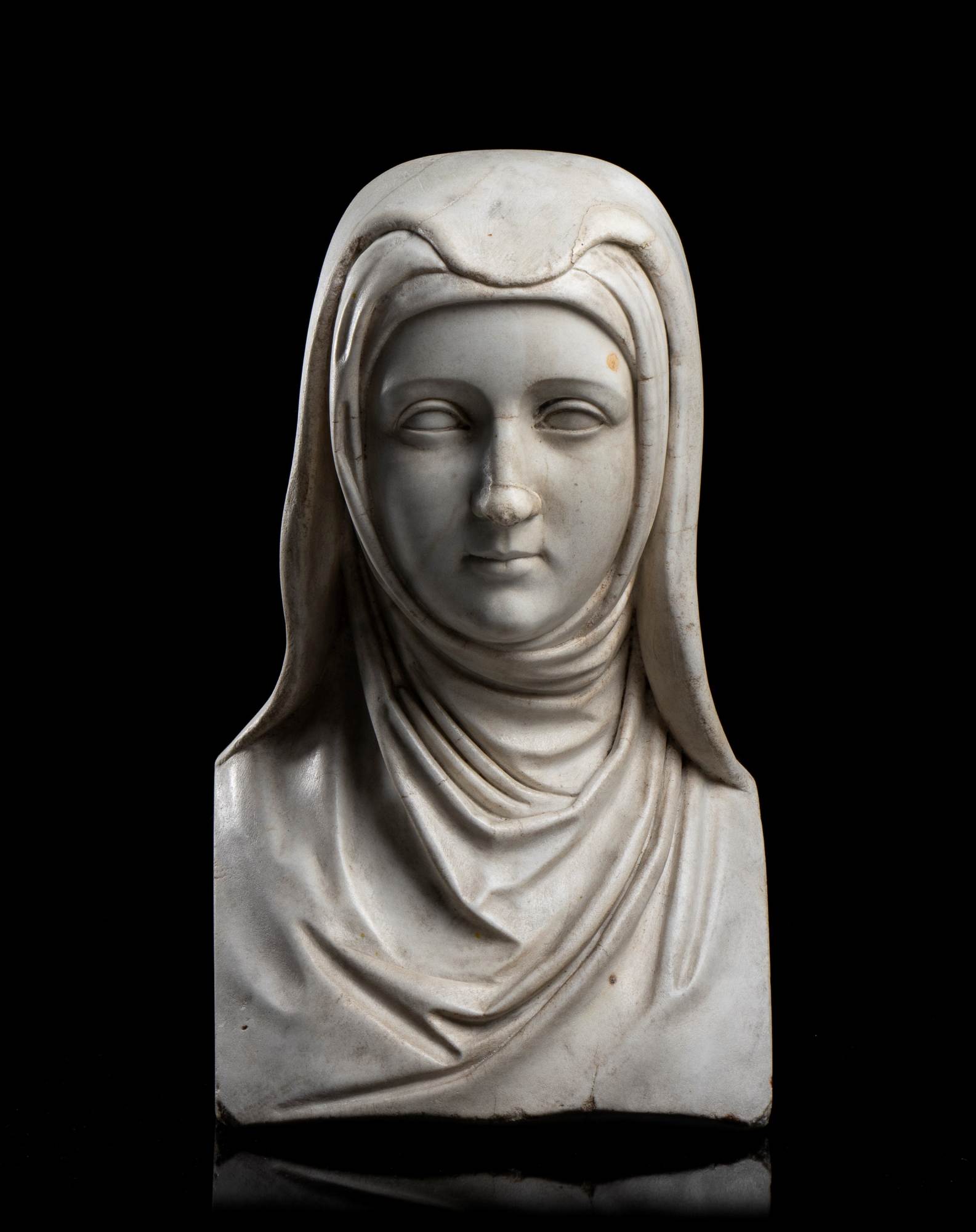 Questo busto raffigura una giovane donna velata, forse una vestale.