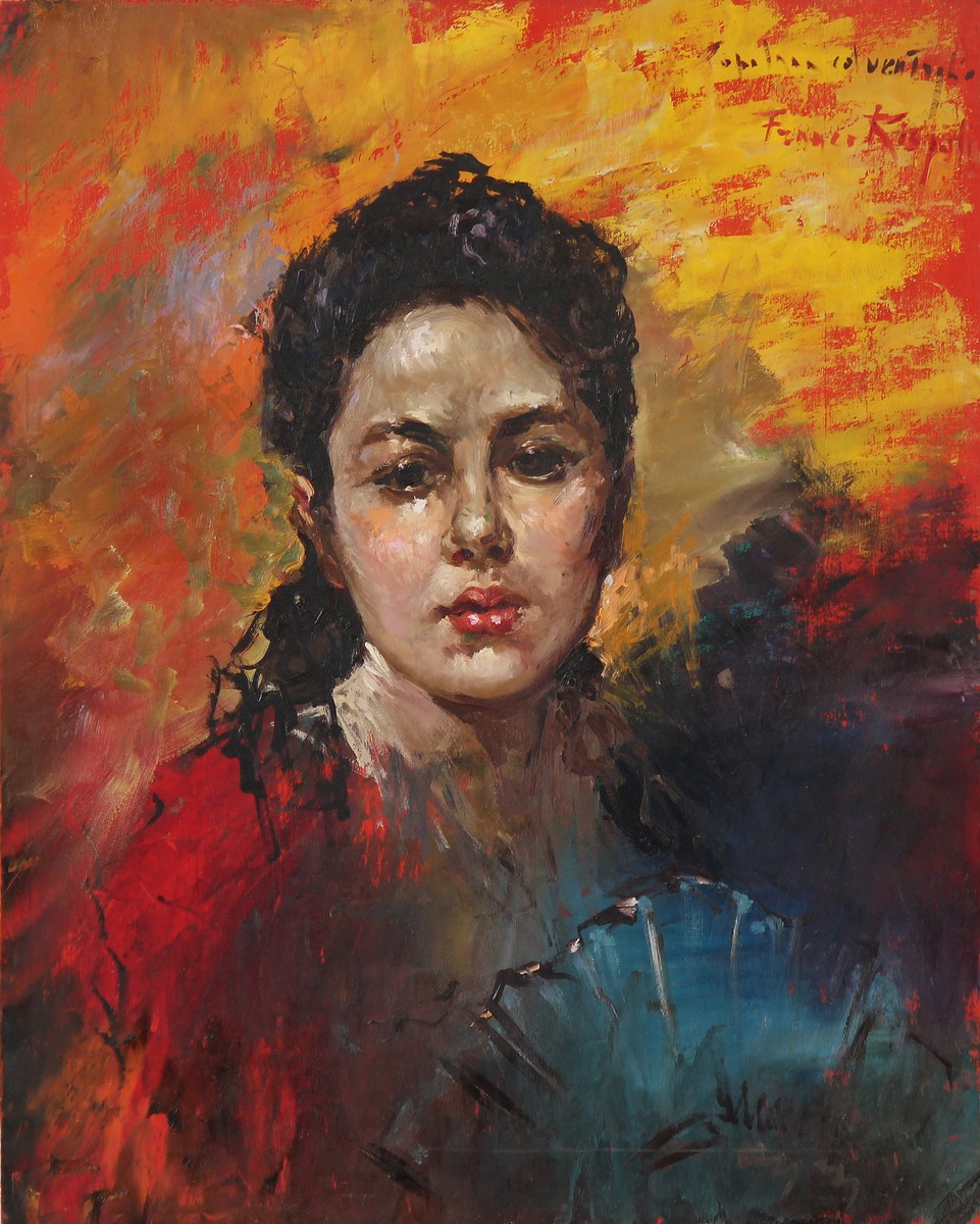 RISPOLI FRANCO (1921 - 1989) Popolana con ventaglio. Olio su tavola. Cm 40,00 x 50,00. Firma e titolo in alto a sinistra.