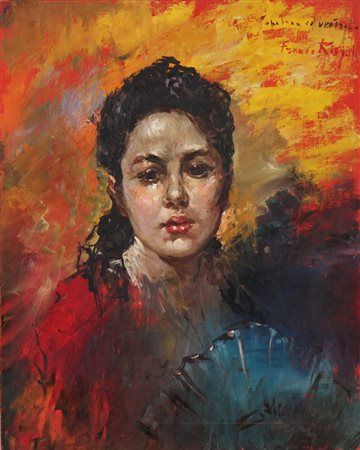 RISPOLI FRANCO (1921 - 1989) Popolana con ventaglio. Olio su tavola. Cm 40,00...