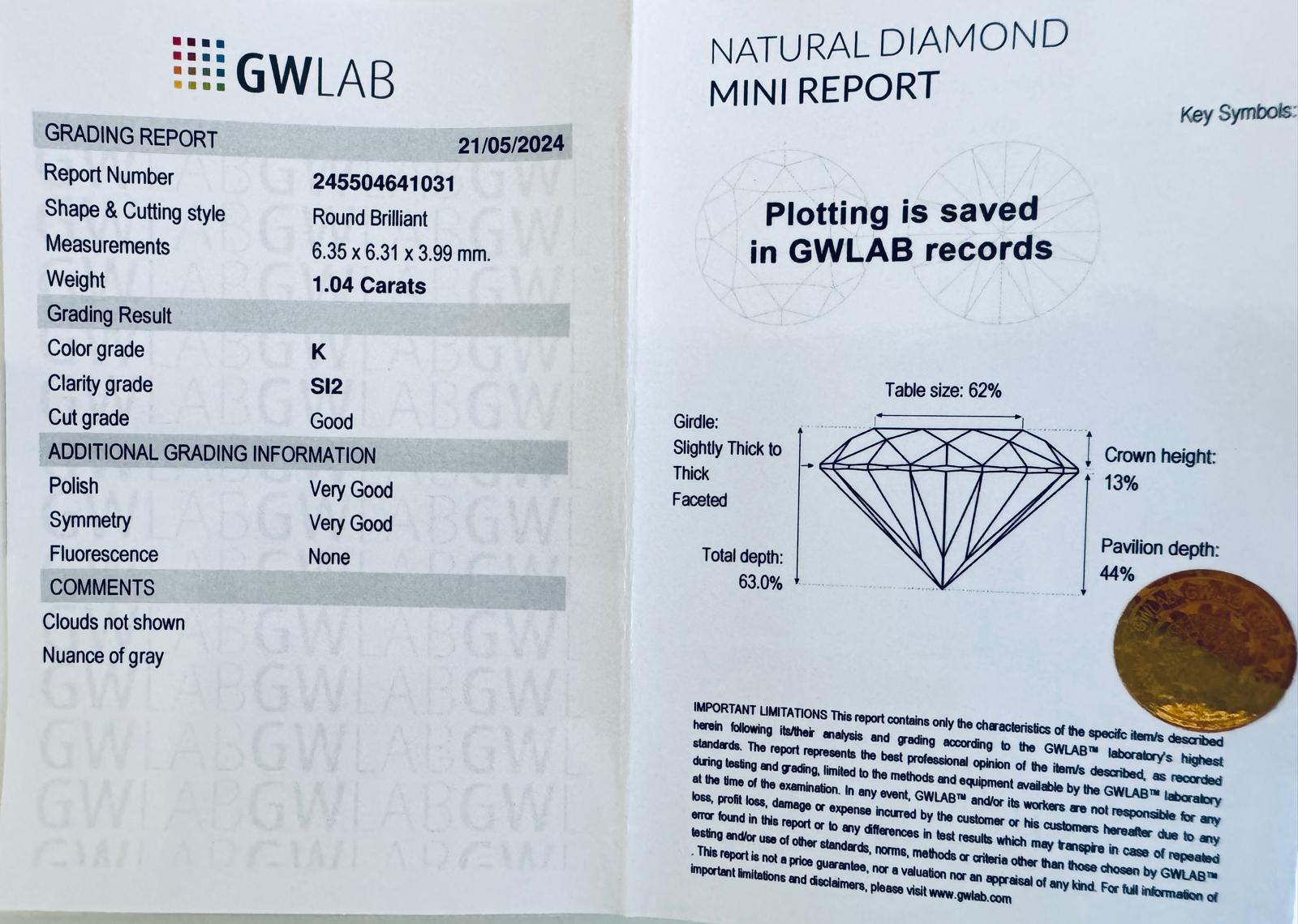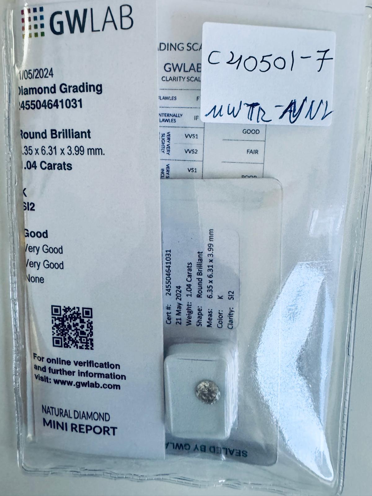 DIAMANTE NATURAL POLISHED 1,04 CT COLORE K - PUREZZA SI2 - TAGLIO BRILLANTE - CERTIFICATO GW - C40501-7