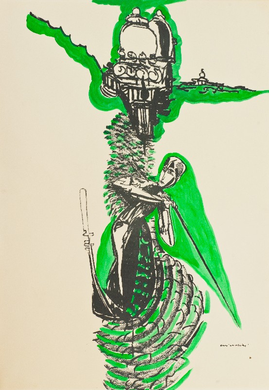 Remo Brindisi (Roma 1918 - Lido di Spina (Fe) 1996) VENEZIA Litografia ritoccata a mano su carta, cm. 70x50 Firmato in basso a destra.
