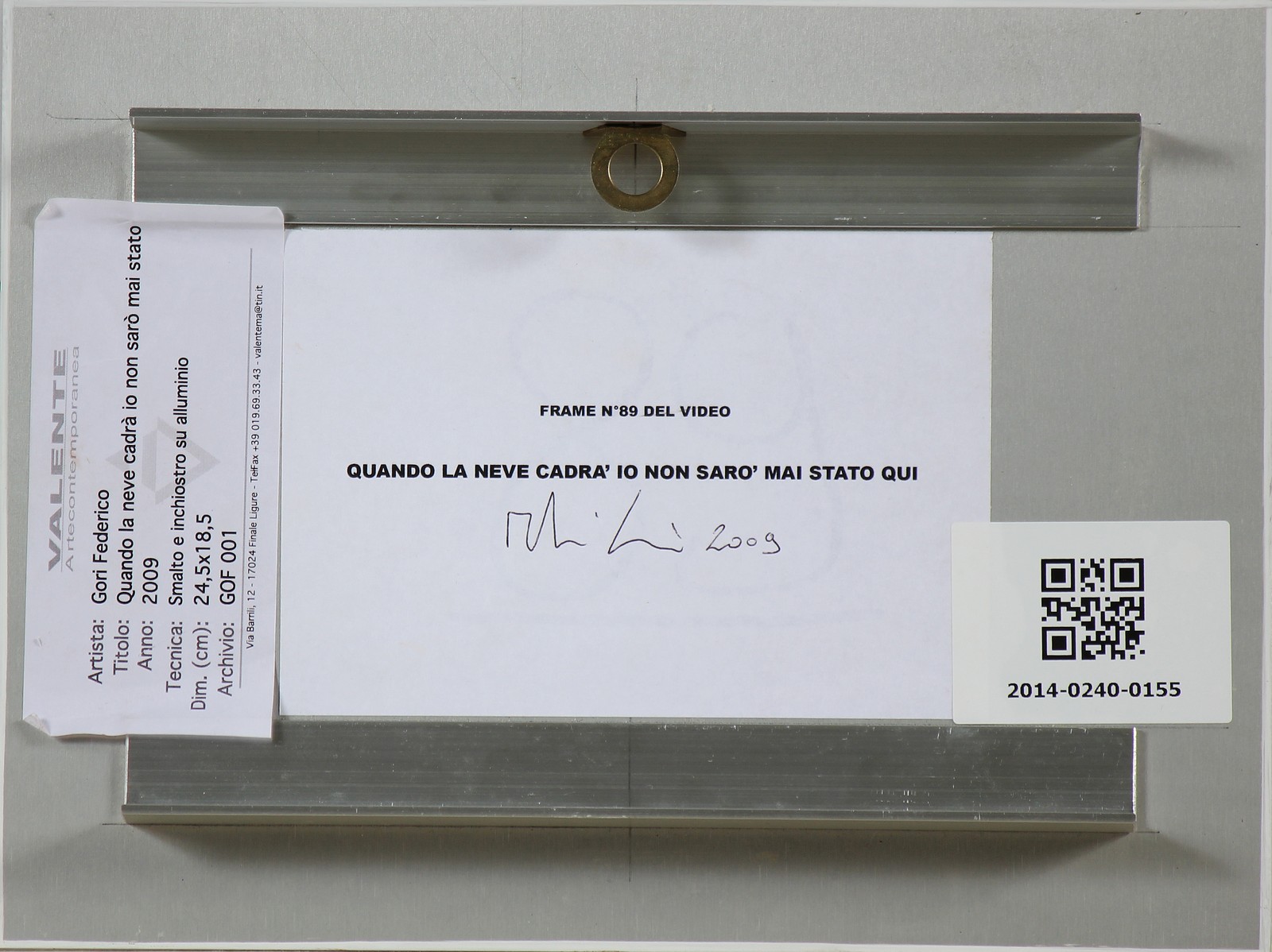 GORI FEDERICO (n. 1977) Quando la neve cadrà io non sarò mai stato qui. Frame...