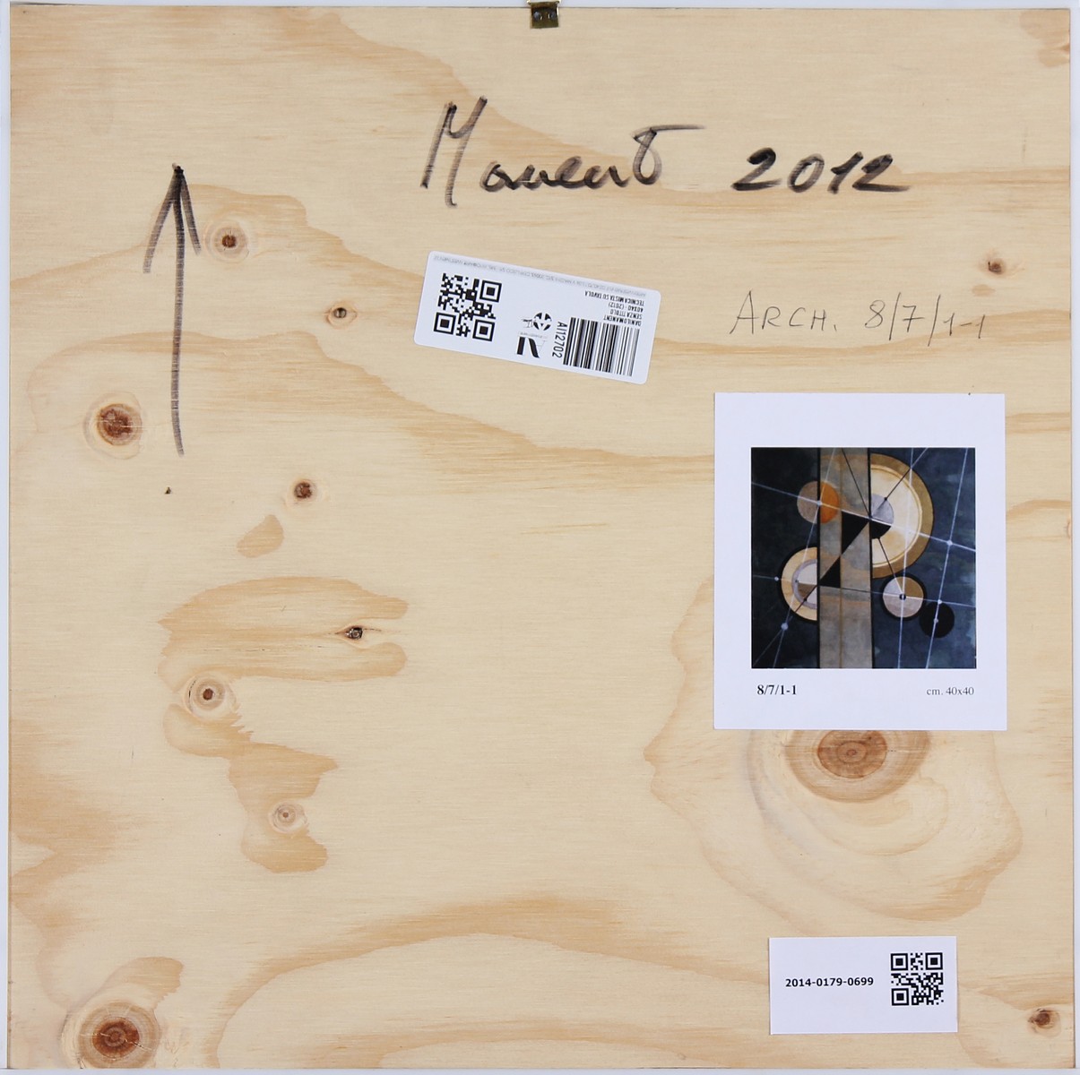 MANENT (n. 1951) Senza Titolo. 2012. Tecnica mista su tavola. Cm 40,00 x 40,00. Al retro firma e data. Opera archiviata presso l'archivio dell'artista come da documentazione fotografica allegata all'opera.