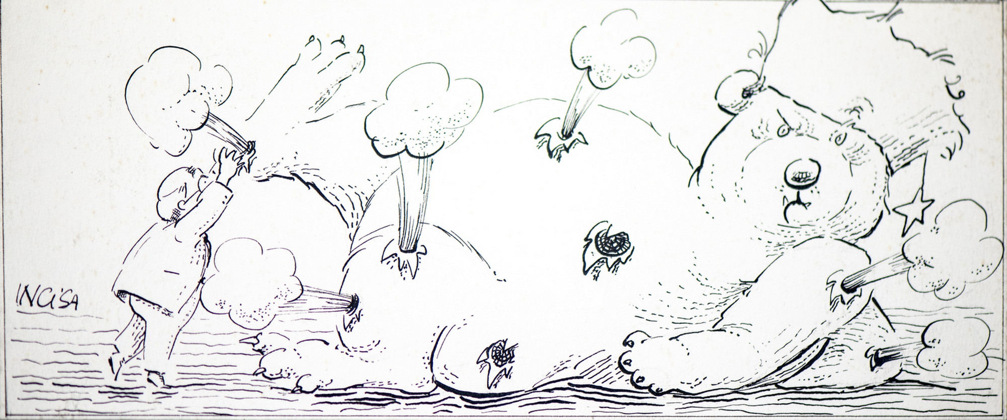 INCISA MONICA "Gorbachev + russia". 1991. Inchiostro su carta. Cm 18,60 x 7,80. VIGNETTA REALIZZATA PER "THE NATION"