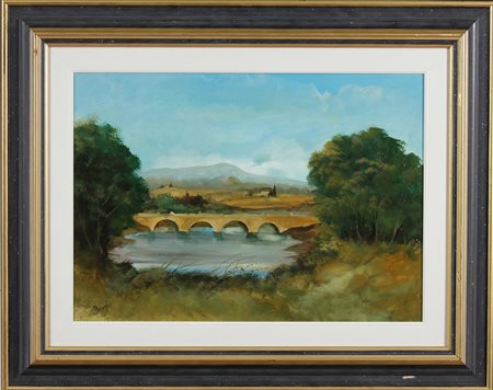 BORGHI PIERO Senza Titolo. Olio su tavola. Cm 70,00 x 50,00. Firma in basso a destra e al retro. Cornice presente