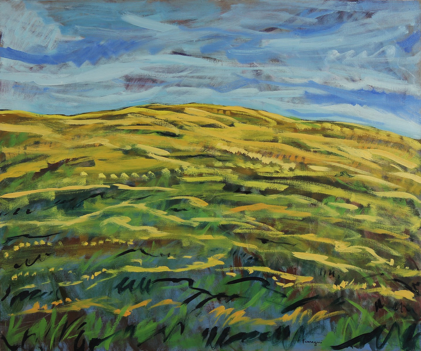 FERRAGNI STEFANO (n. 1926) Paesaggio. 1990. Olio su tela . Cm 120,00 x 100,00. Pubblicato sul catalogo "Stefano Ferragni, Paesaggi" a cura dell'Associazione Culturale Amici Dell'Arte, Bergamo. Firmato in basso a sinistra.