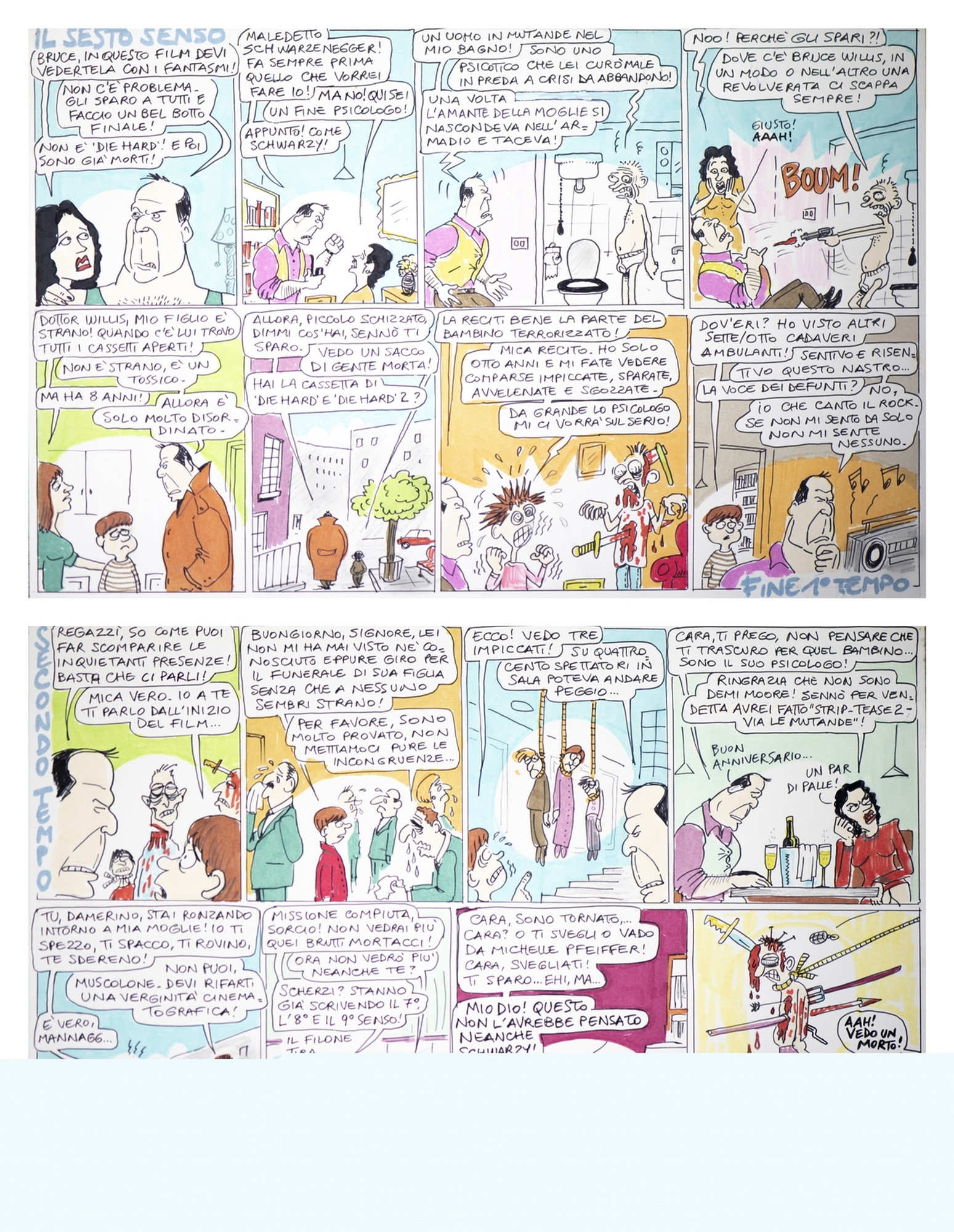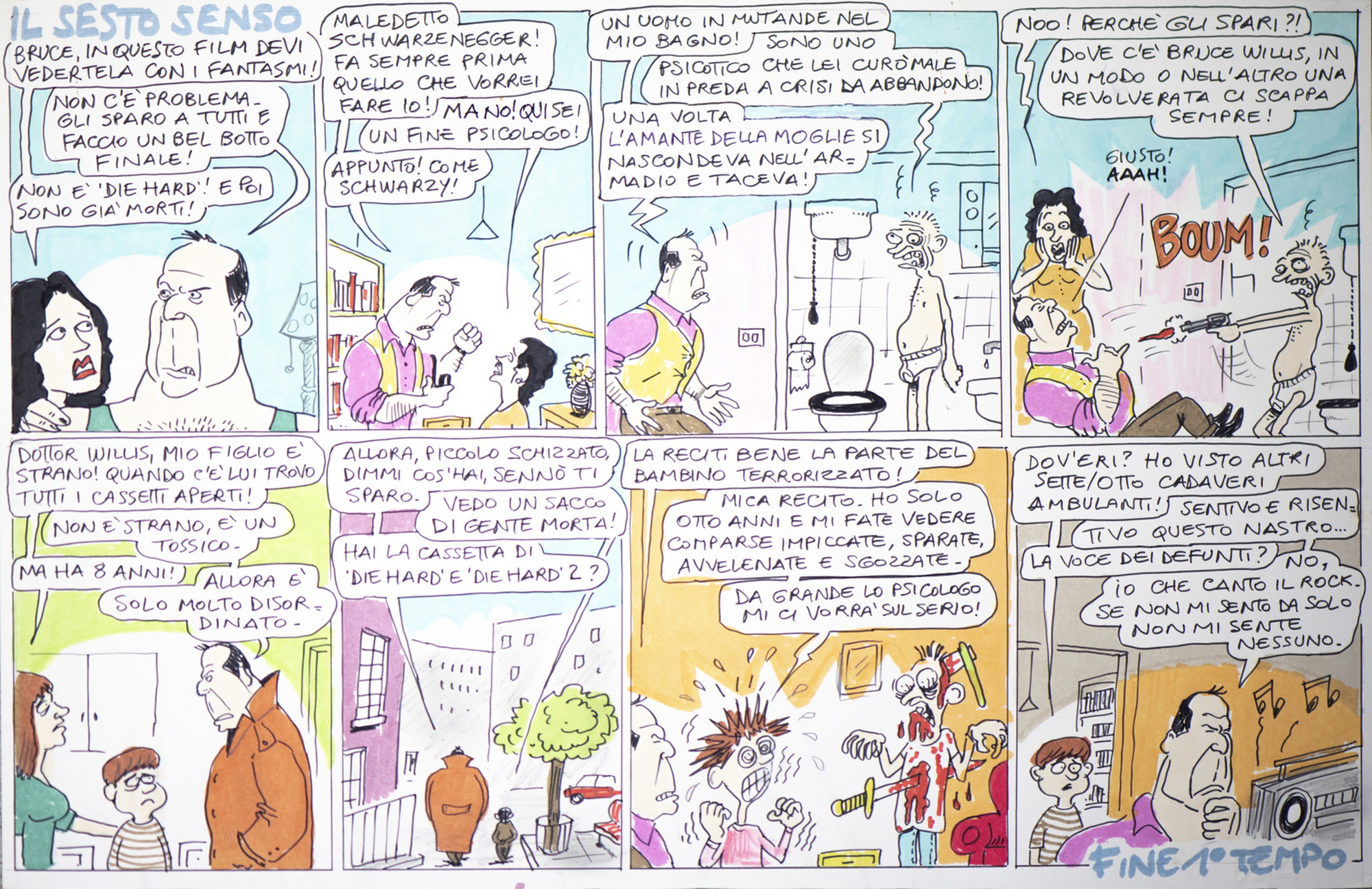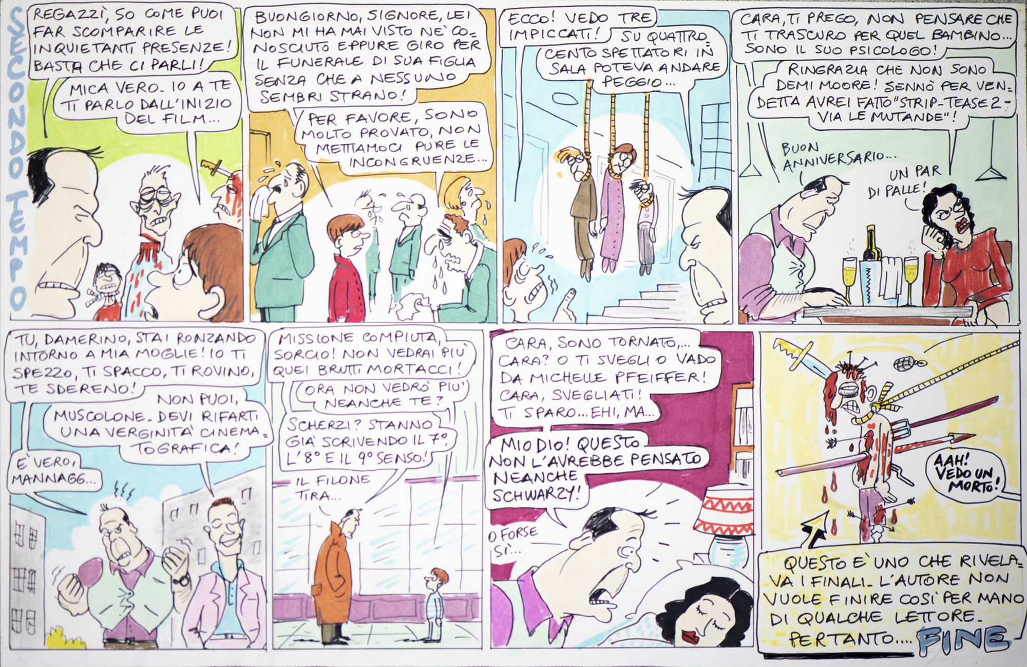DISEGNI STEFANO Il sesto senso: L'ammazzafilm del 1999 di Stefano Disegni. pennarelli, matite, bianchetto, correzioni in carta dell'autore, pecette. Cm 48,00 x 33,00. The Sixth Sense - Il sesto senso (The Sixth Sense) è un film del 1999 scritto e diretto da M. Night Shyamalan.