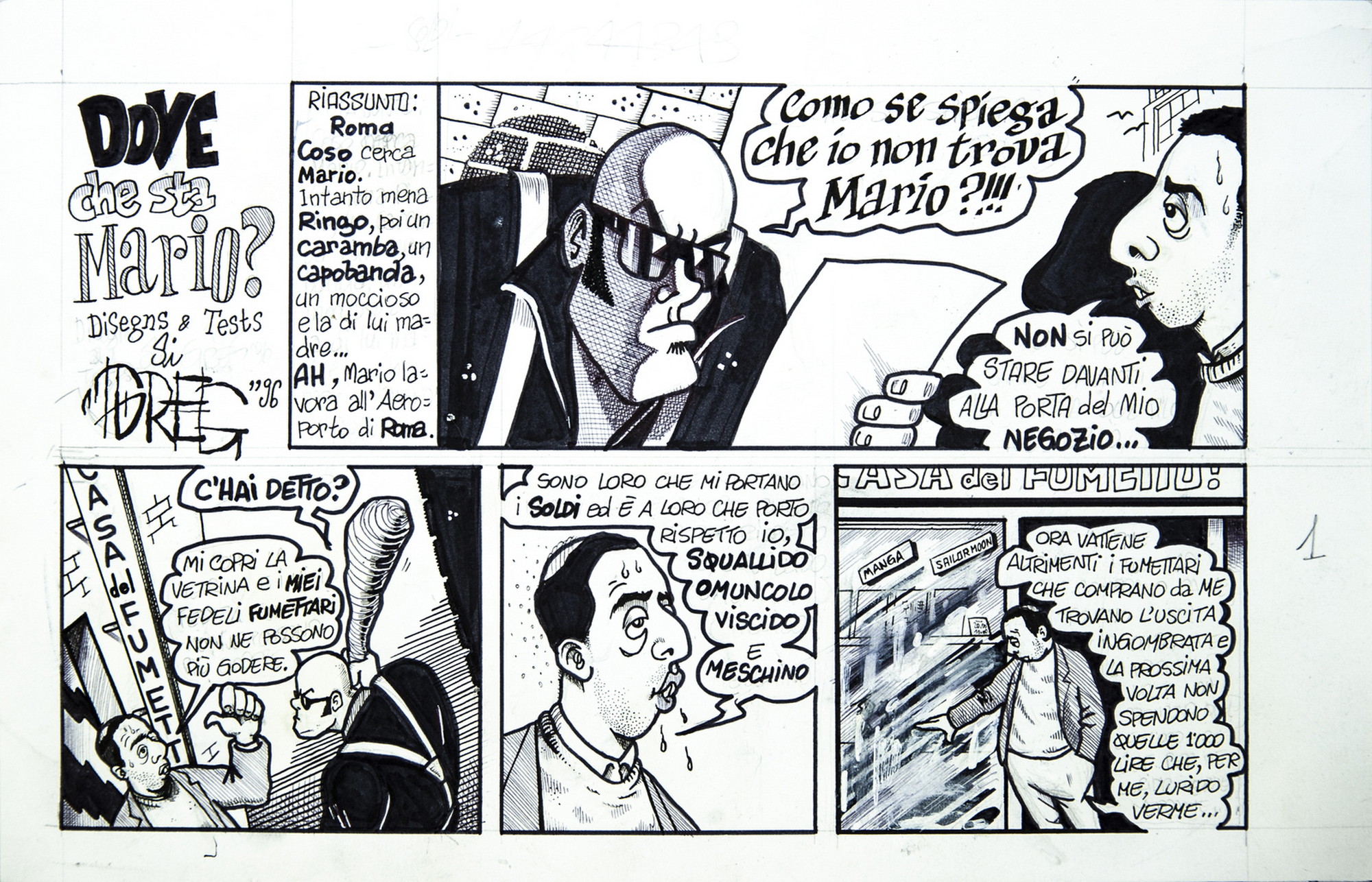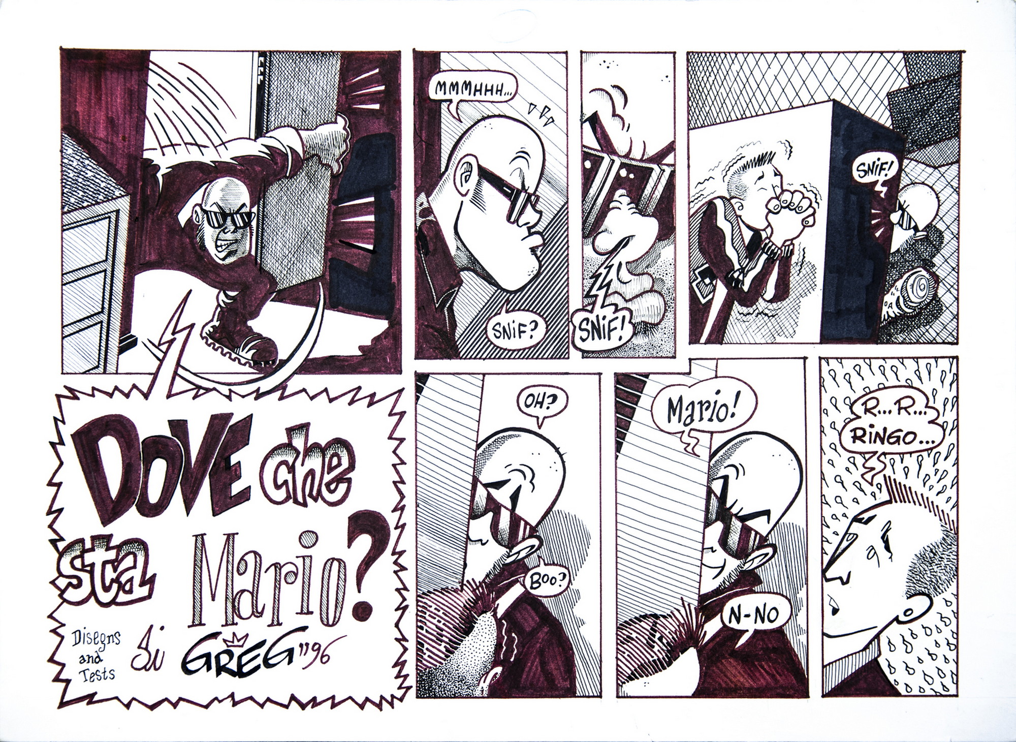 GREGORI CLAUDIO "DOVE CHE STA' MARIO?". 1996. China su carta. Cm 34,00 x 24,00. STORIA IN 9 TAVOLE DEL PERIODO STORICO DEI LATTI E SUOI DERIVATI