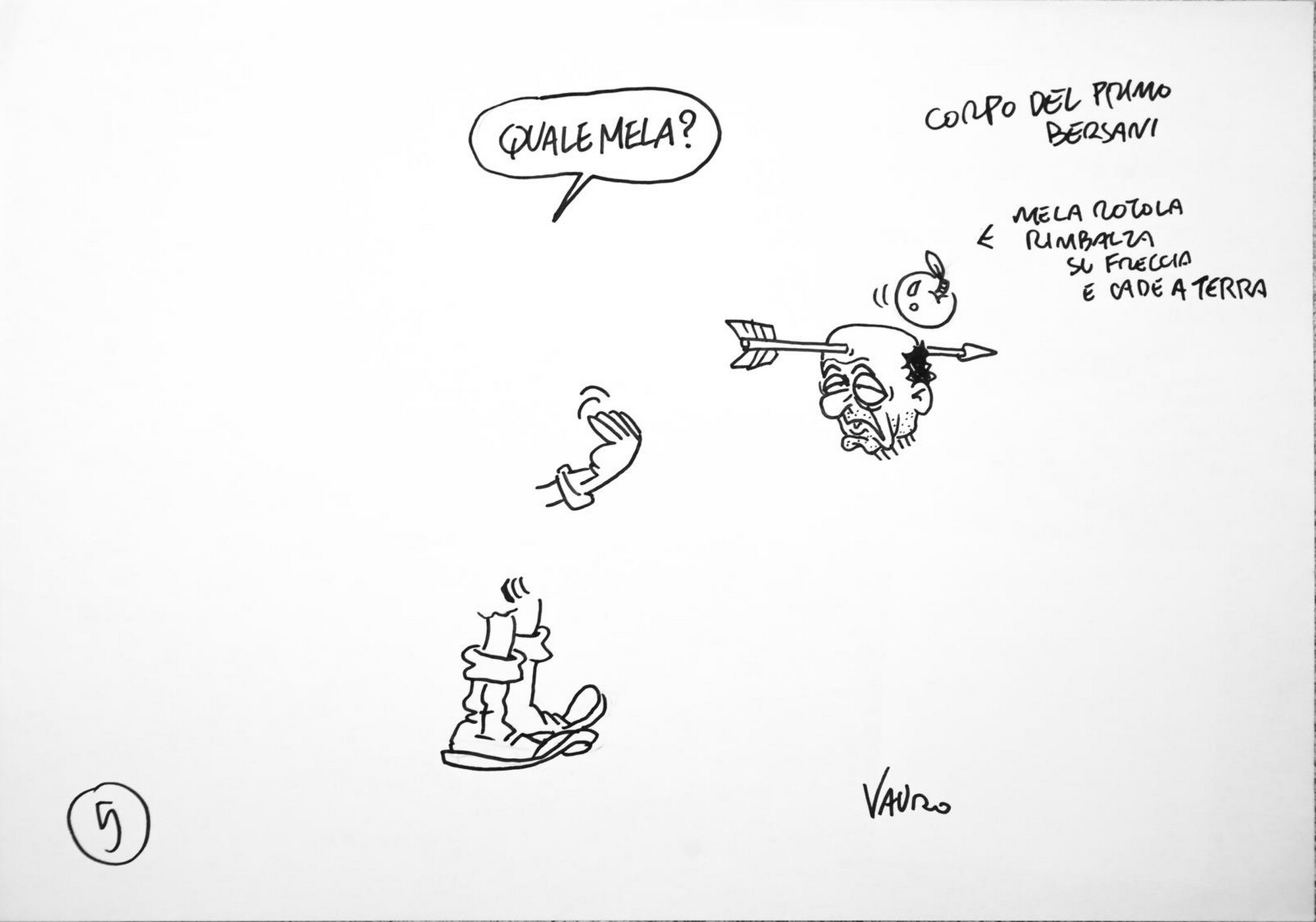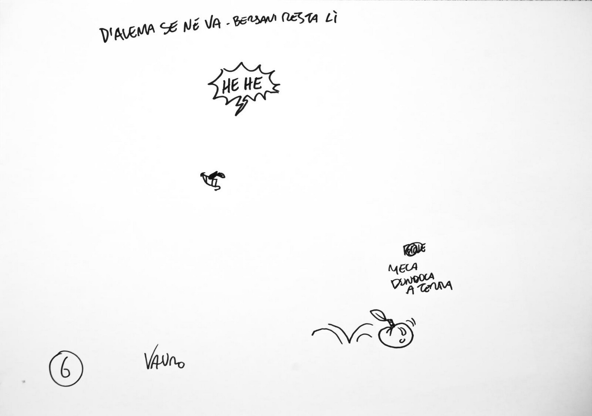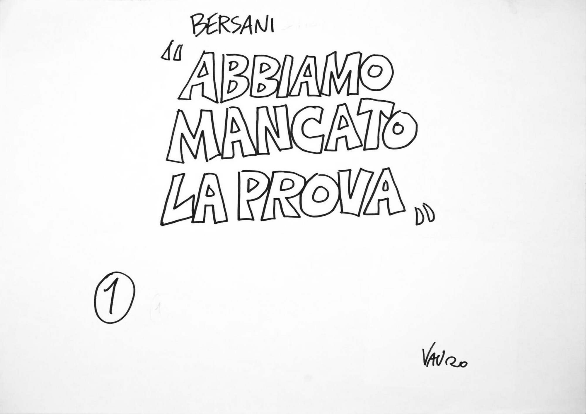 SENESI VAURO (n. 1955) "ABBIAMO MANCATO LA PROVA" . 2013. Pennarello su carta. Cm 30,00 x 20,00. https://michelesantoro.it/2013/05/bersani-mancato-la-prova-la-vignetta-vauro/