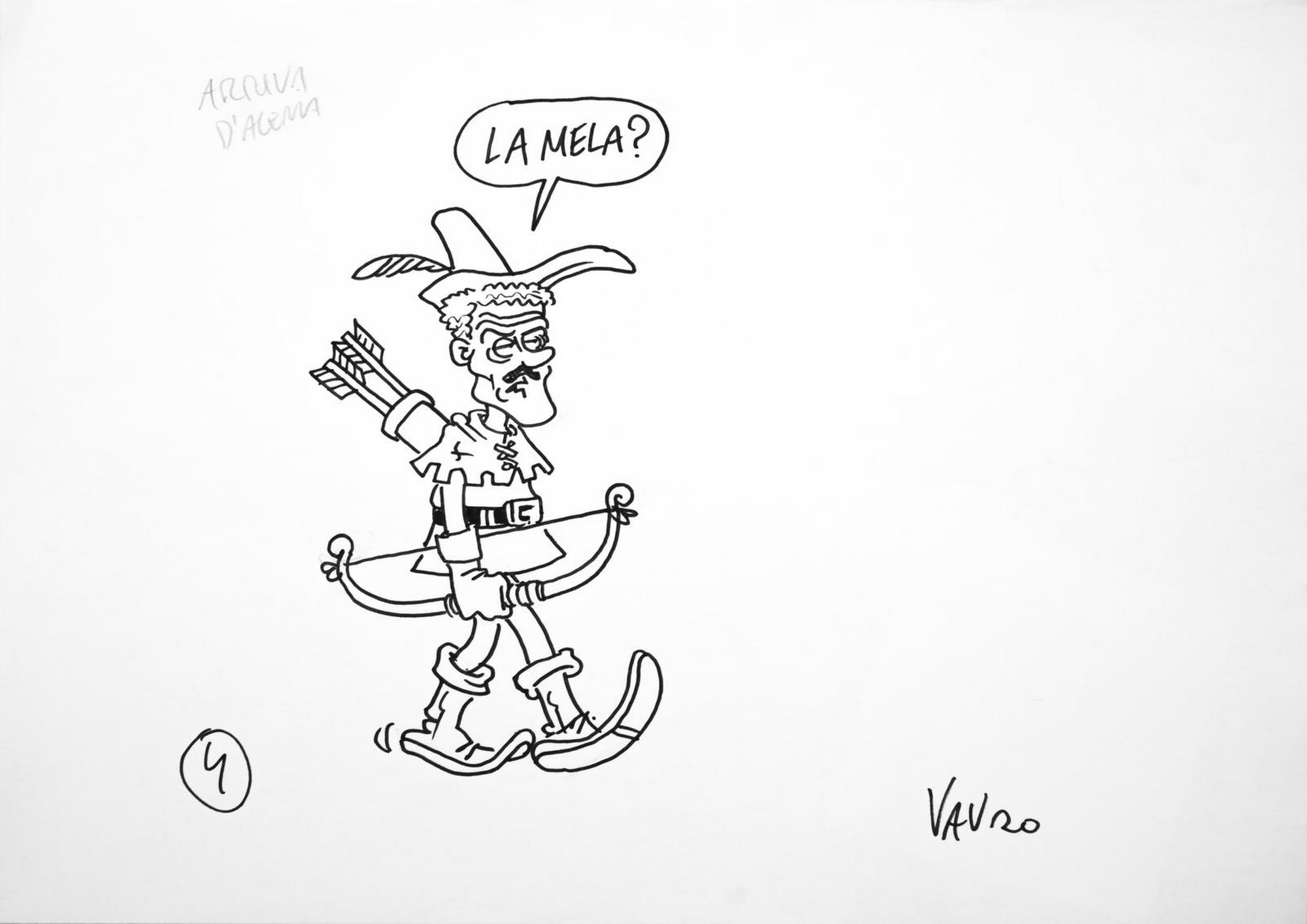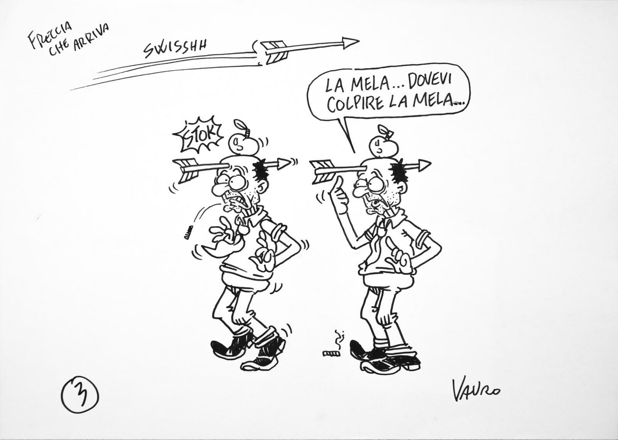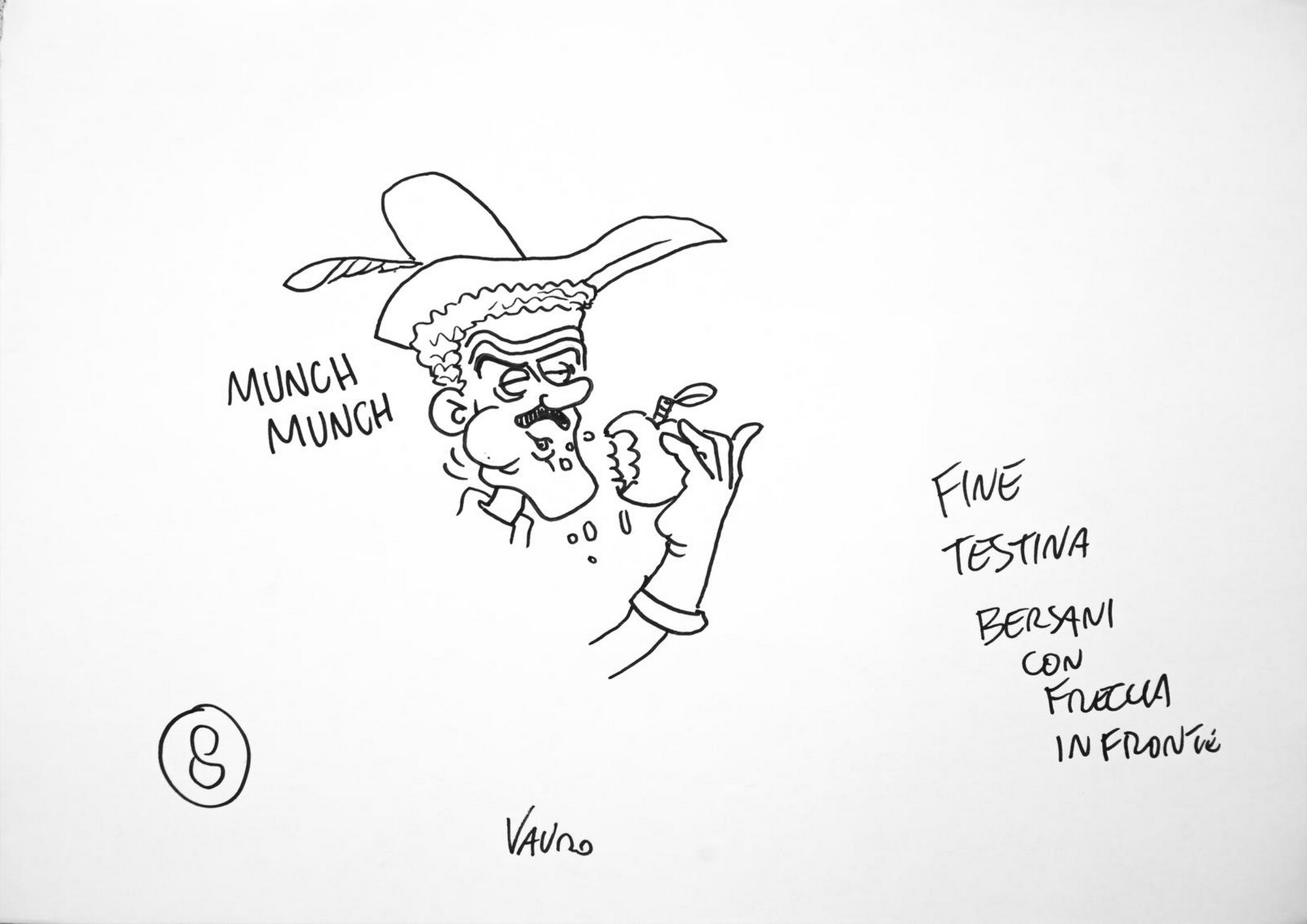 SENESI VAURO (n. 1955) "ABBIAMO MANCATO LA PROVA" . 2013. Pennarello su carta. Cm 30,00 x 20,00. https://michelesantoro.it/2013/05/bersani-mancato-la-prova-la-vignetta-vauro/