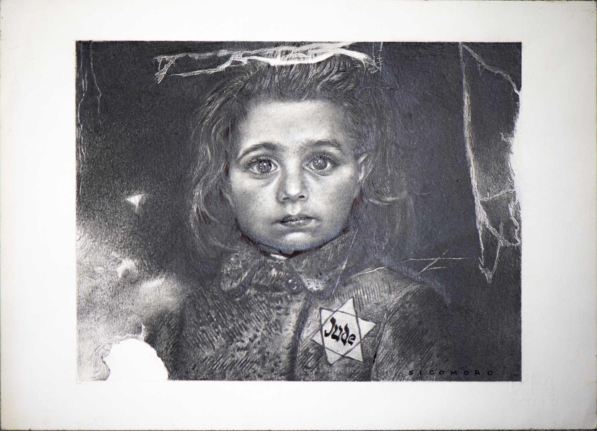 Sicomoro Eugenio "LEGGI RAZZIALI". grafite su carta. Cm 33,00 x 24,00. Disegno per il centenario delle leggi razziali emanate dal Regime Fascista.