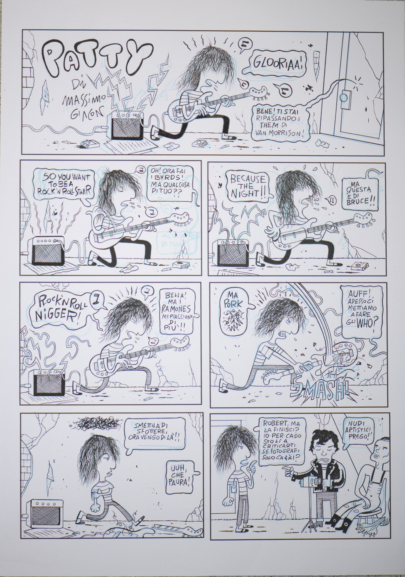 GIACON MASSIMO " Patty 1". 2021. Inchiostro su carta. Cm 29,00 x 42,00. Pagina apparsa su Linus n. 11 di Novembre 2021
