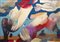 FERRARO ALESSANDRO "Anna Achmatova, stormo di versi bruciati". acrilico su carta. Cm 15,00 x 11,00. "La serie delle cartoline in poesia, una delle ultime ricerche dell'artista con questa sua idea della parola come segno magico e dell’importanza del valore simbolico delle lettere dell’alfabeto che ne ha fatto anche uno stile pittorico e illustrativo". Così dal catalogo di Sconfinamenti.