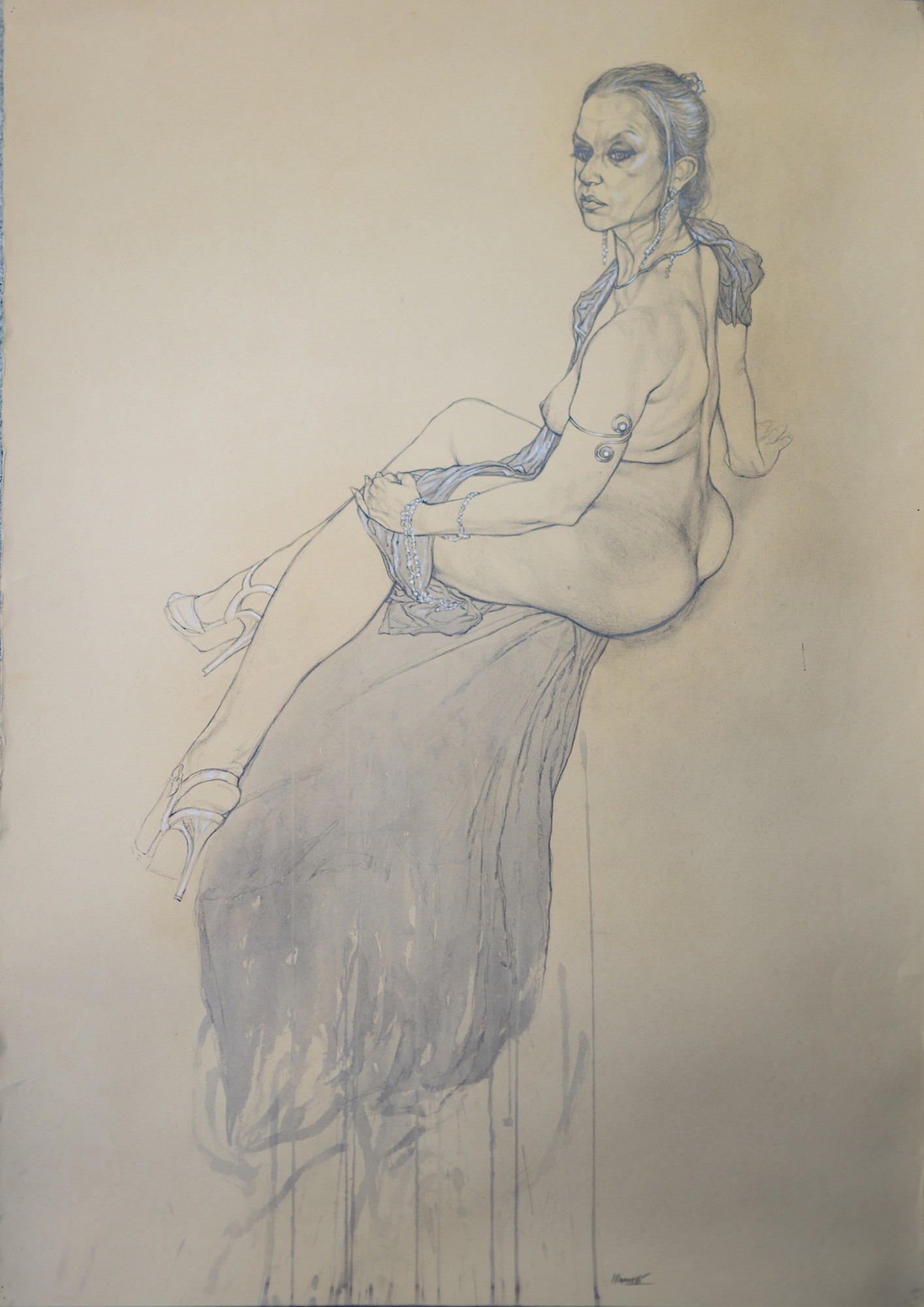 MANNELLI RICCARDO "MARIANGELA DAL VERO". 2023. GRAFITE PASTELLI E ACQUERELLI. Cm 70,00 x 100,00.
