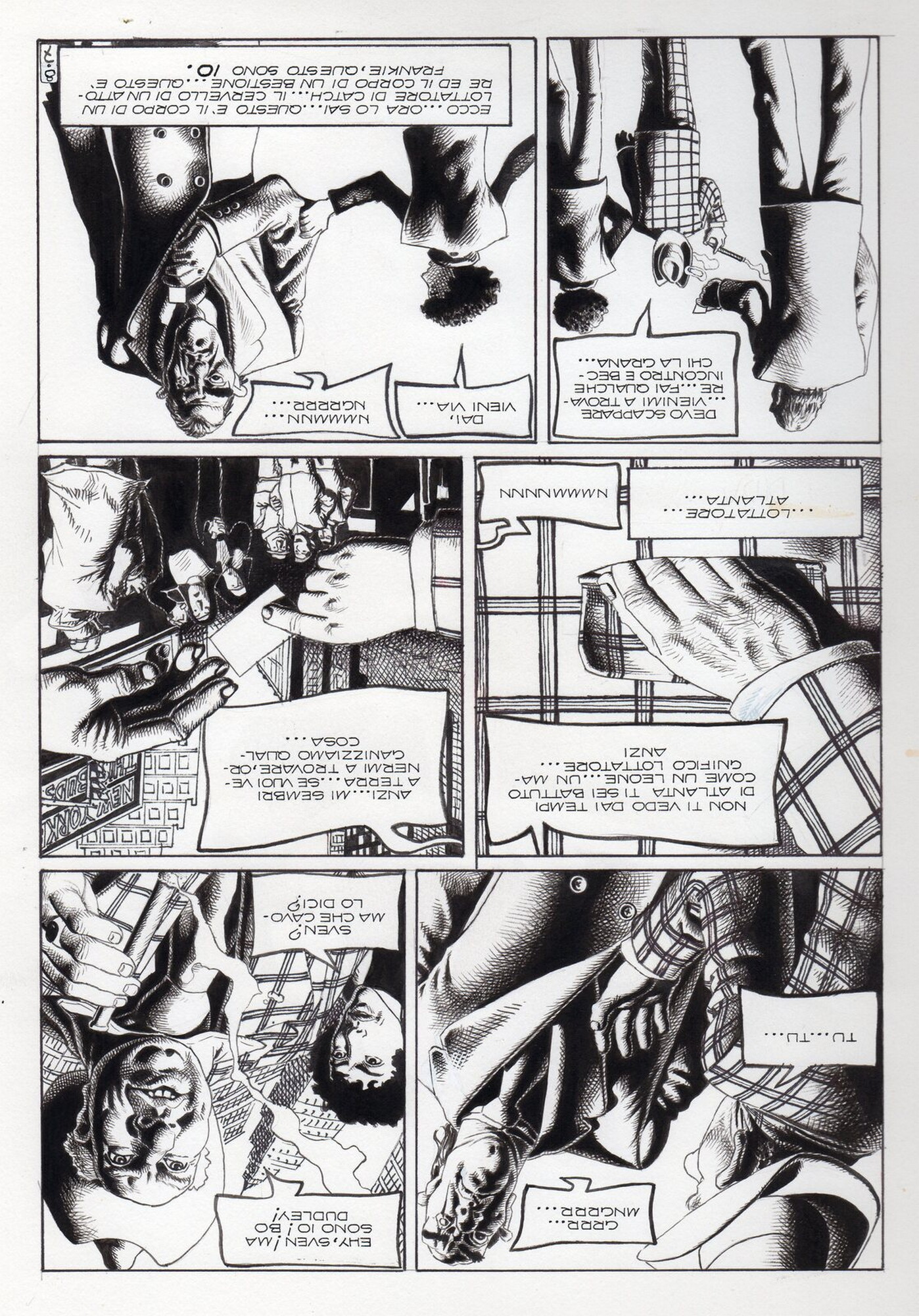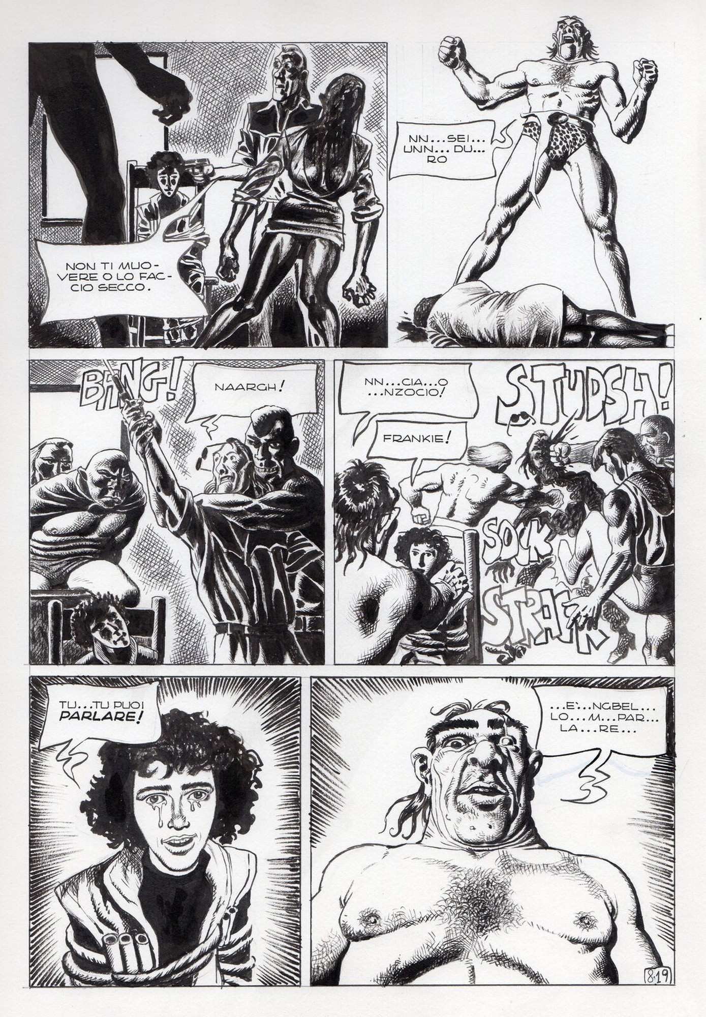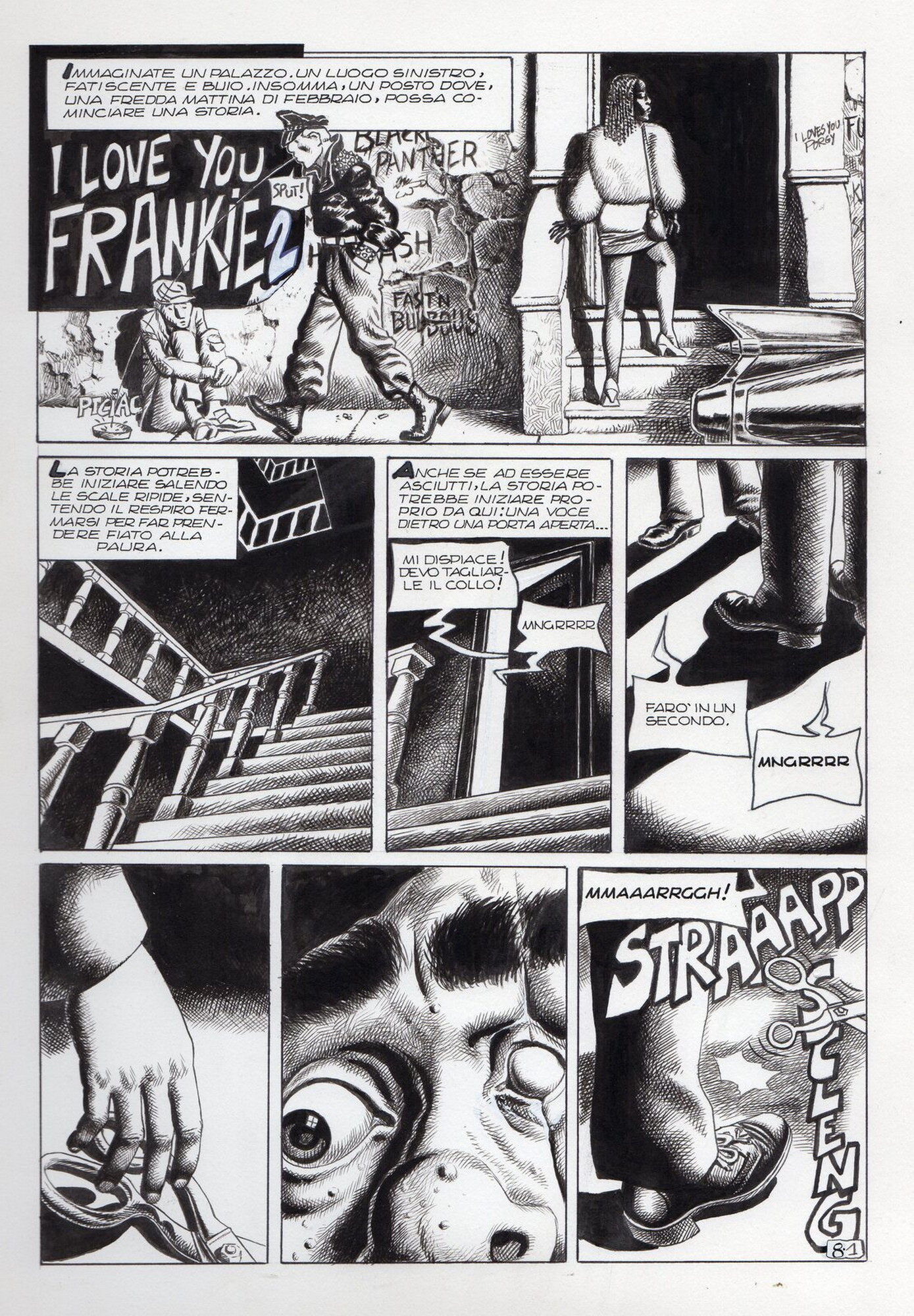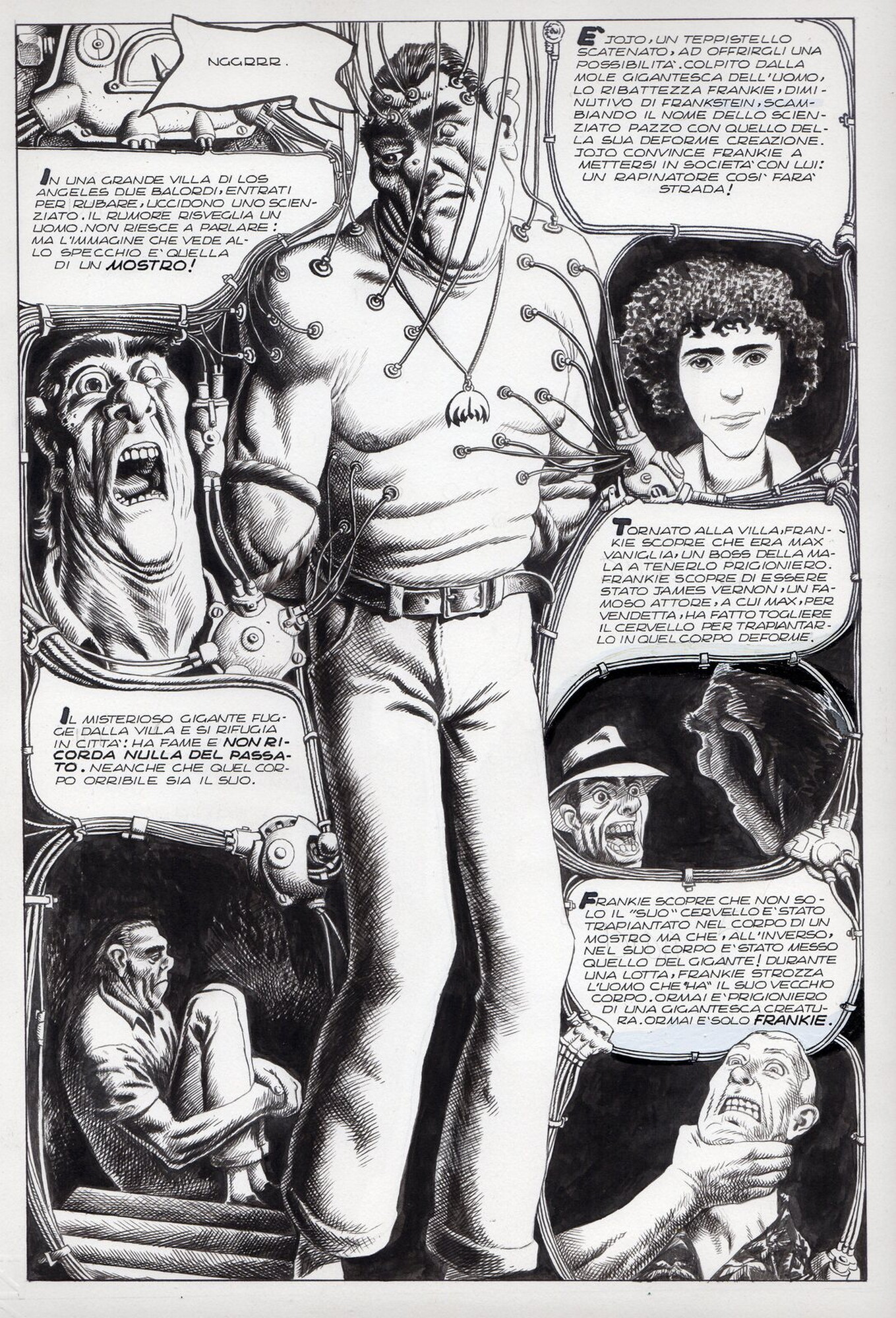 Di Giammarino Luigi (n. 1959) " Franky ". 1993. China su cartonciono. Cm 34,00 x 48,00. Opera integrale di 21 tavole pubblicata dalla rivista Splatter nel 1993