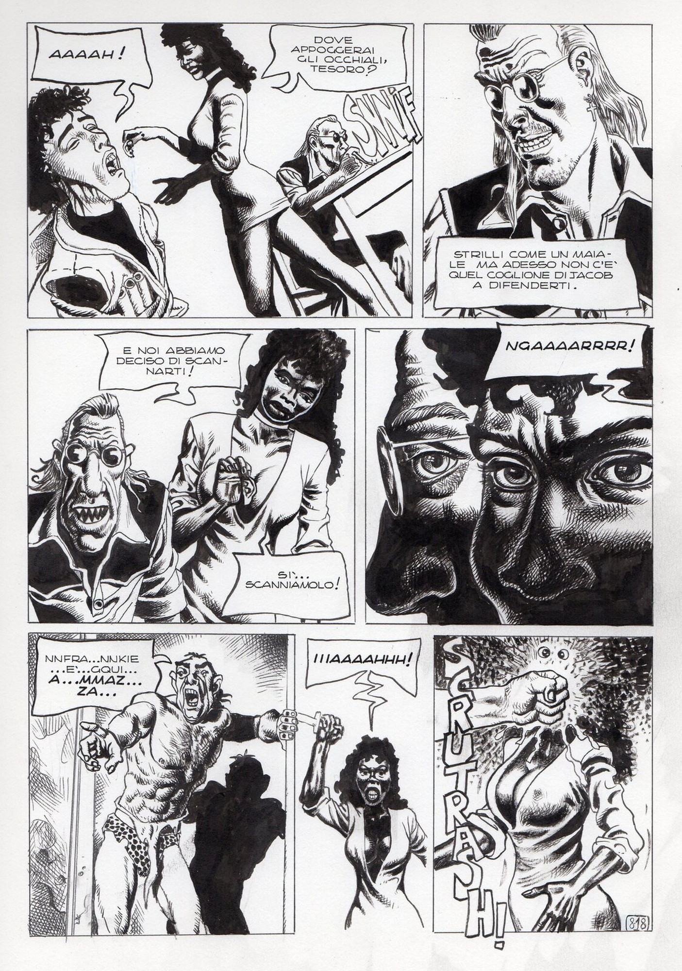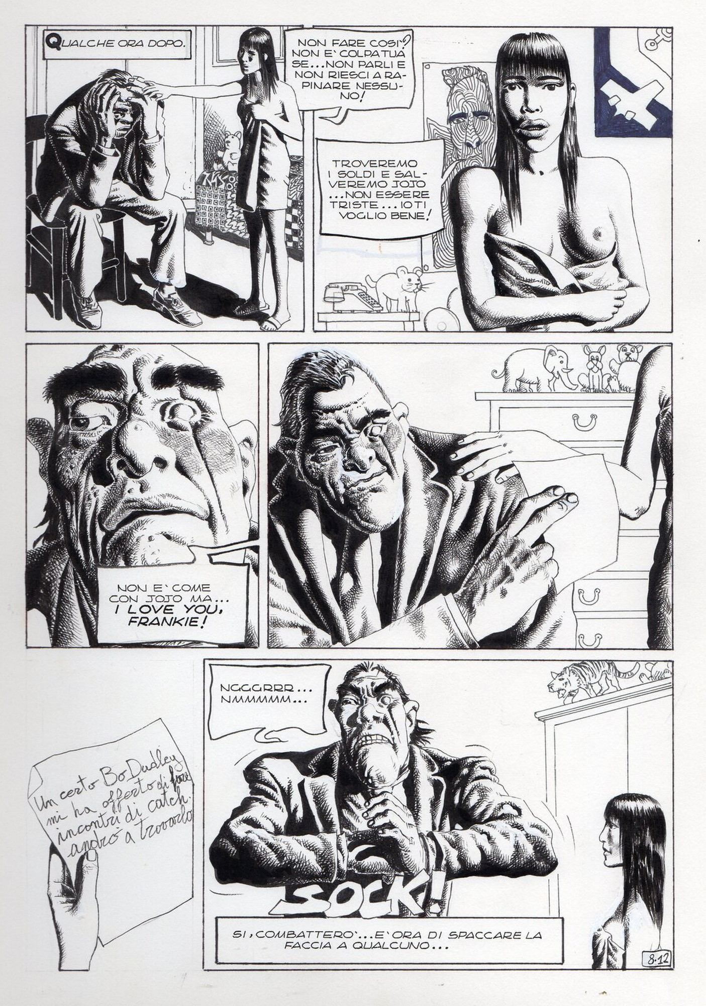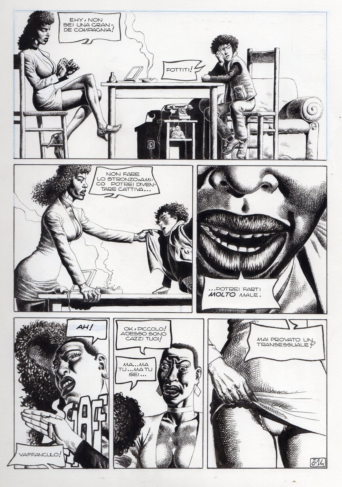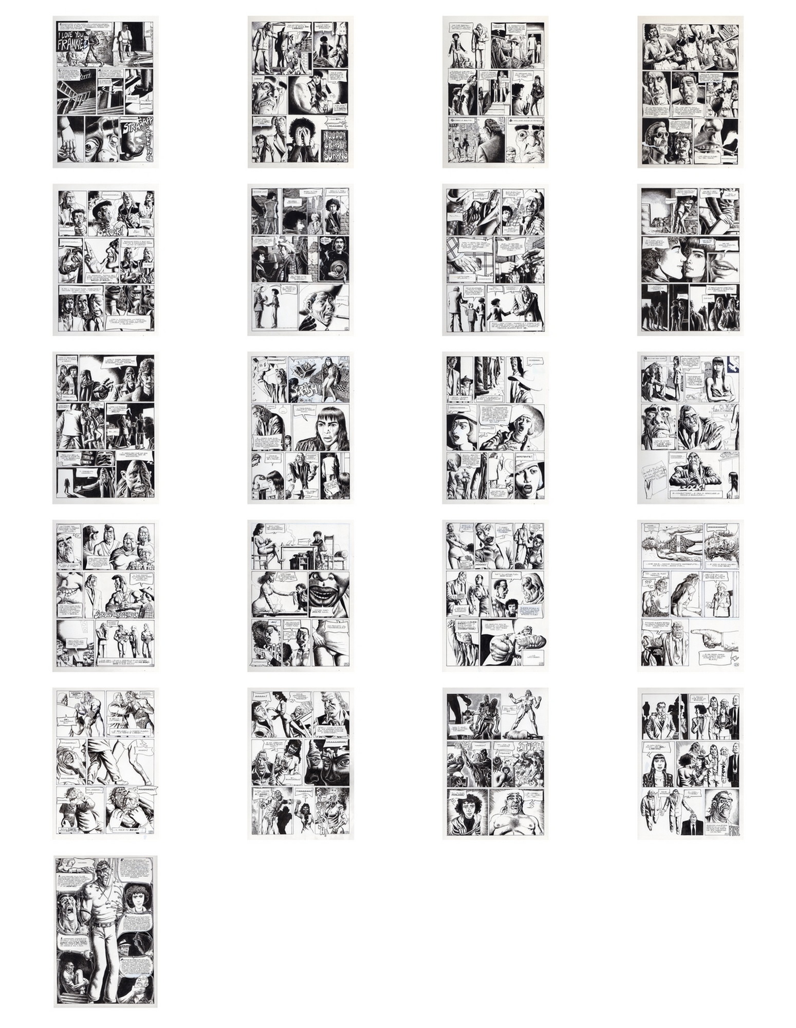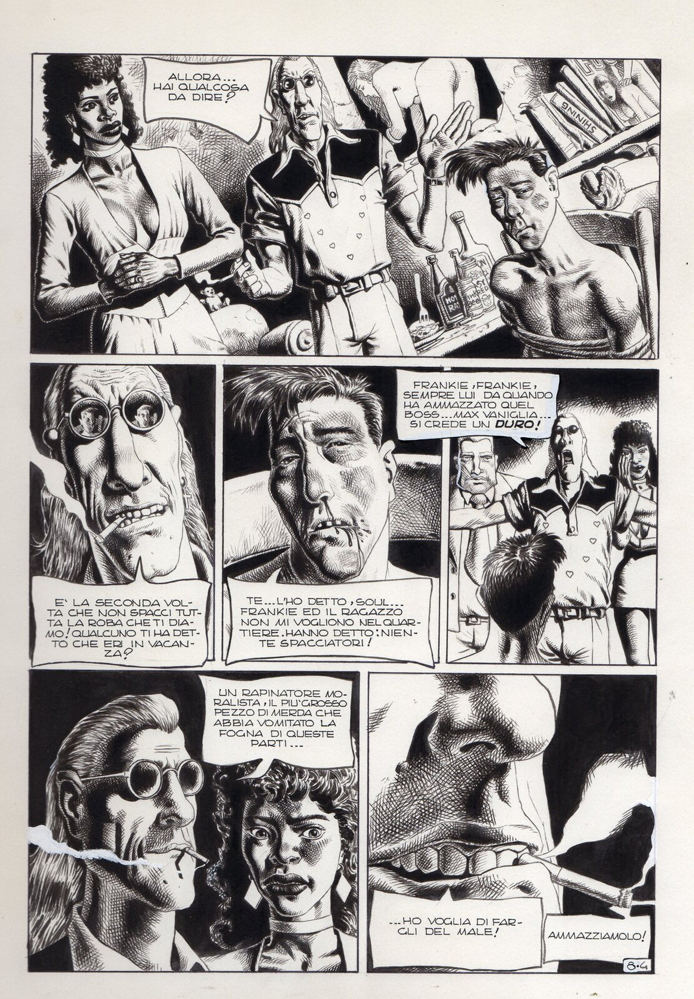 Di Giammarino Luigi (n. 1959) " Franky ". 1993. China su cartonciono. Cm 34,00 x 48,00. Opera integrale di 21 tavole pubblicata dalla rivista Splatter nel 1993
