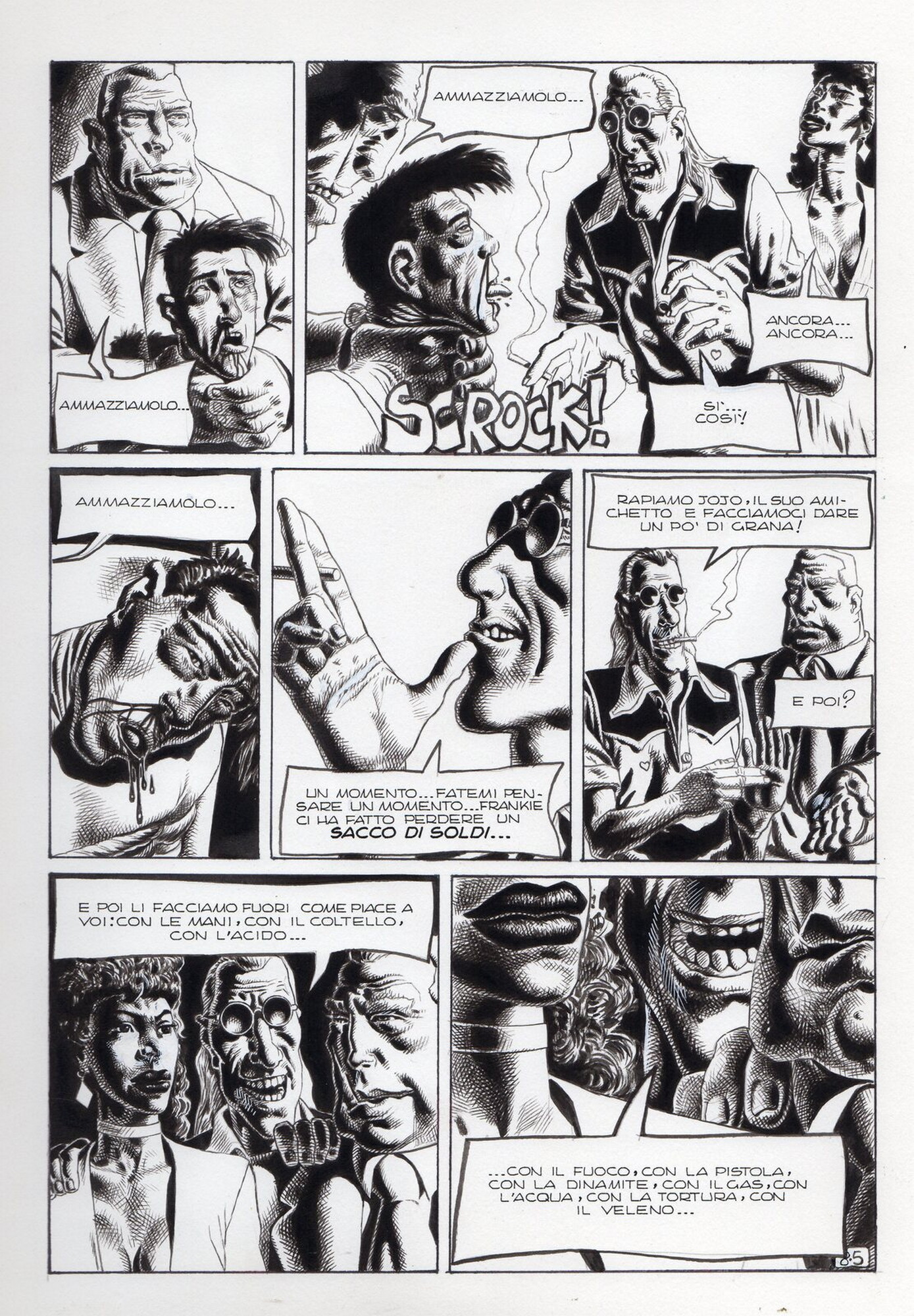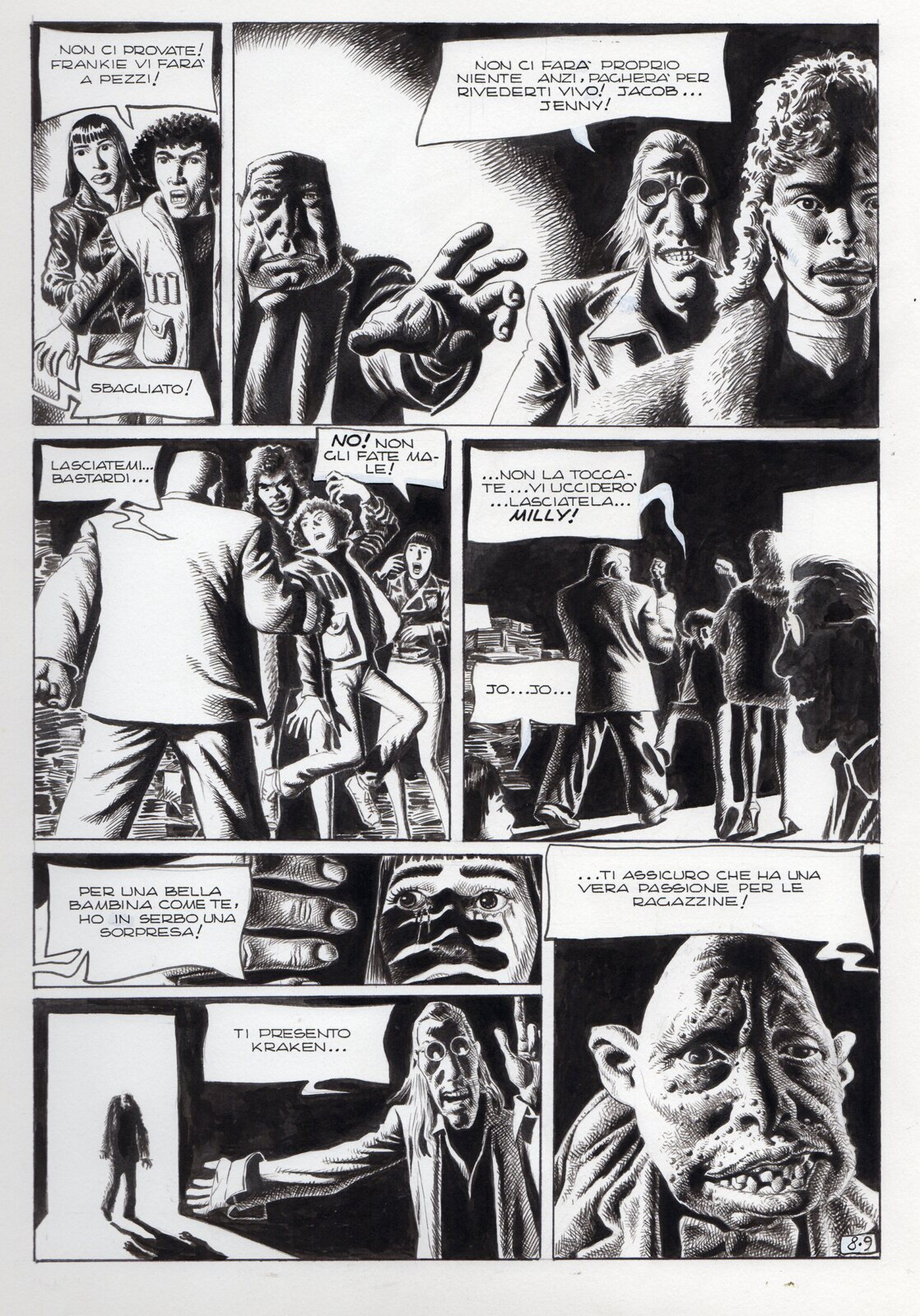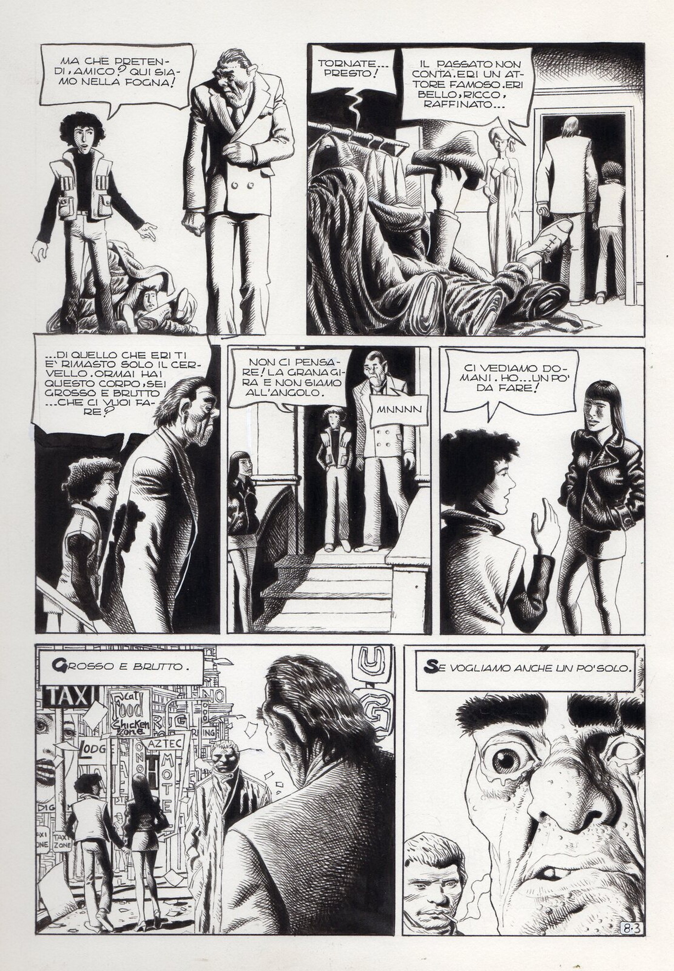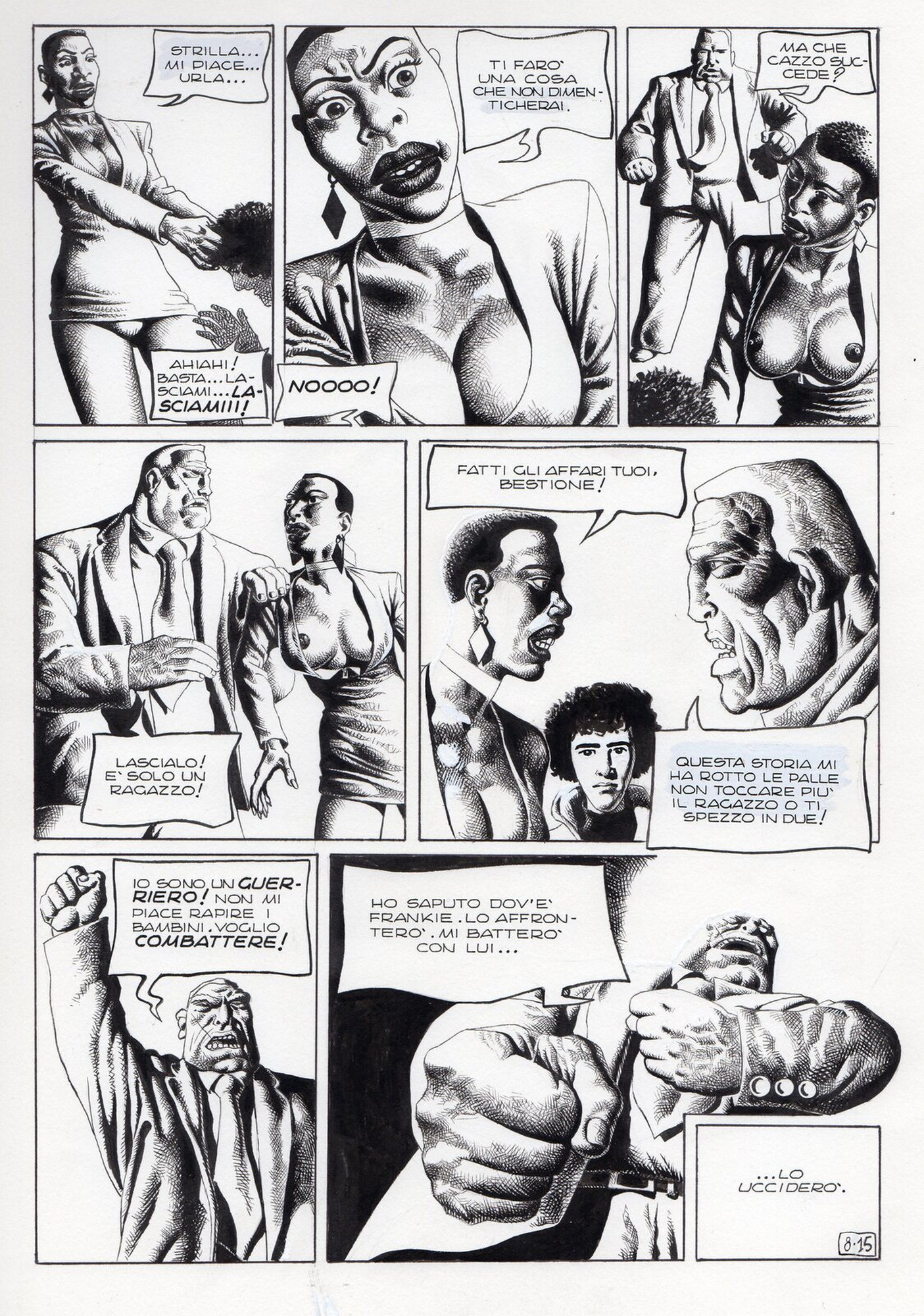 Di Giammarino Luigi (n. 1959) " Franky ". 1993. China su cartonciono. Cm 34,00 x 48,00. Opera integrale di 21 tavole pubblicata dalla rivista Splatter nel 1993