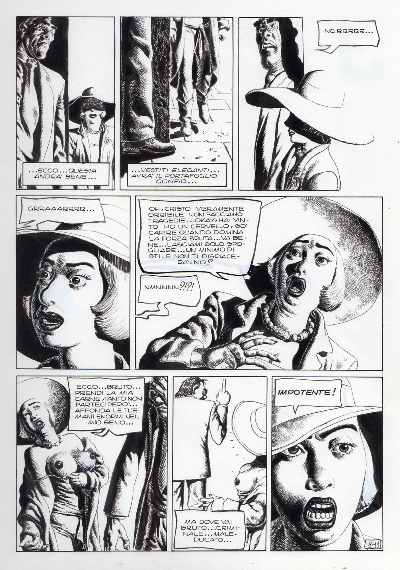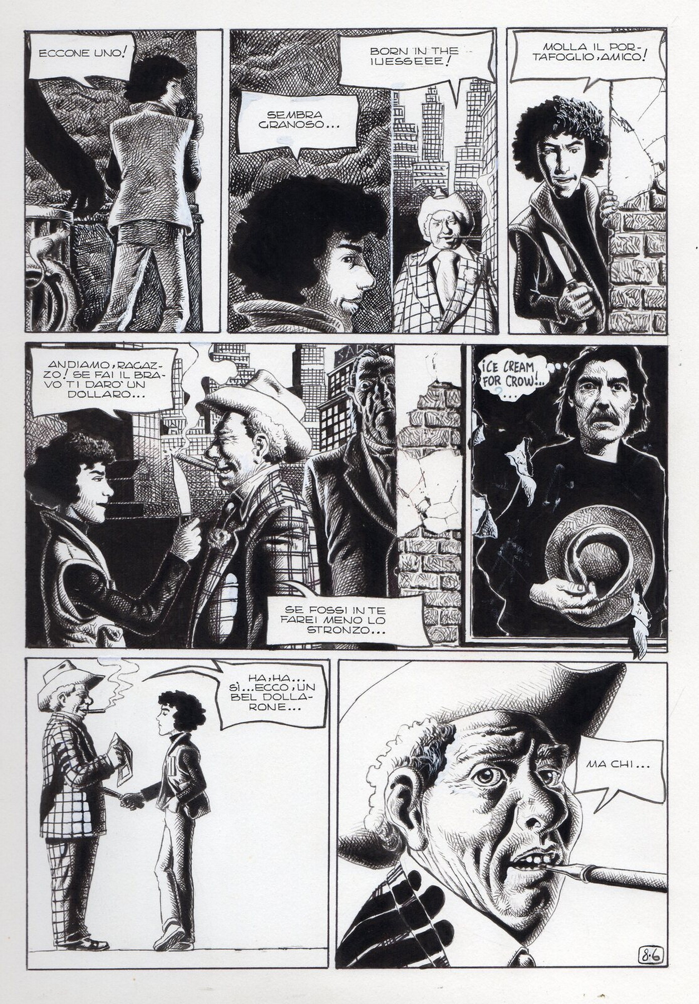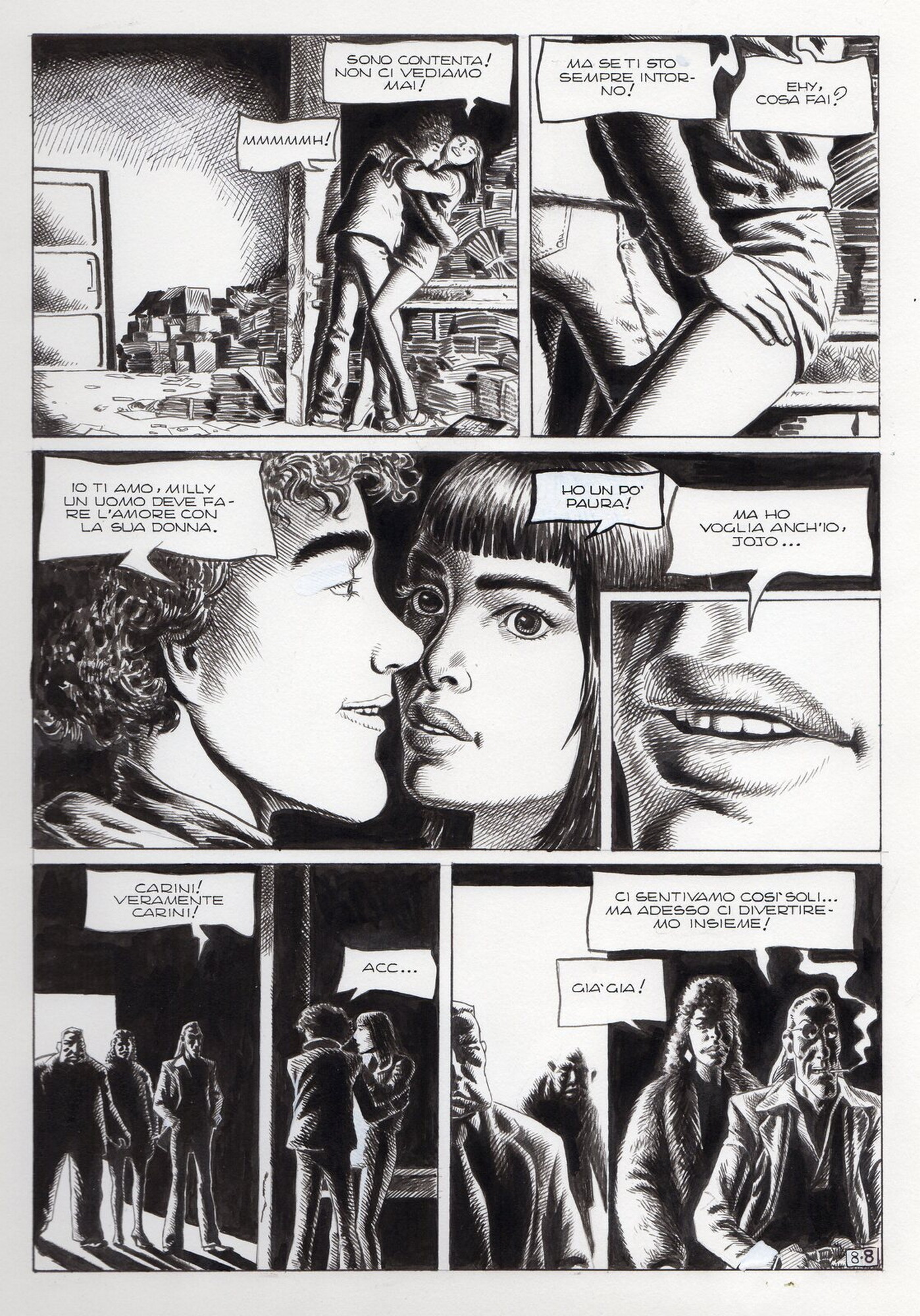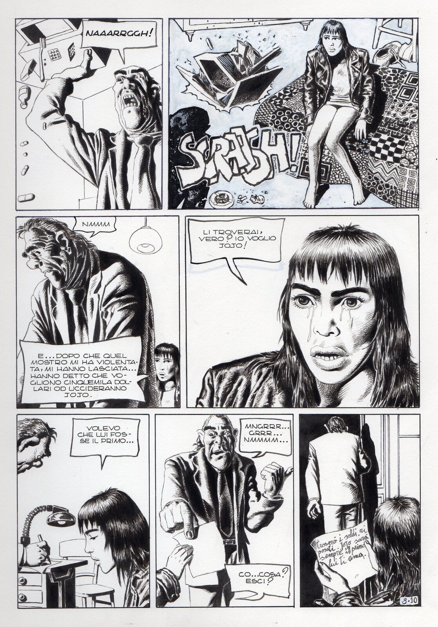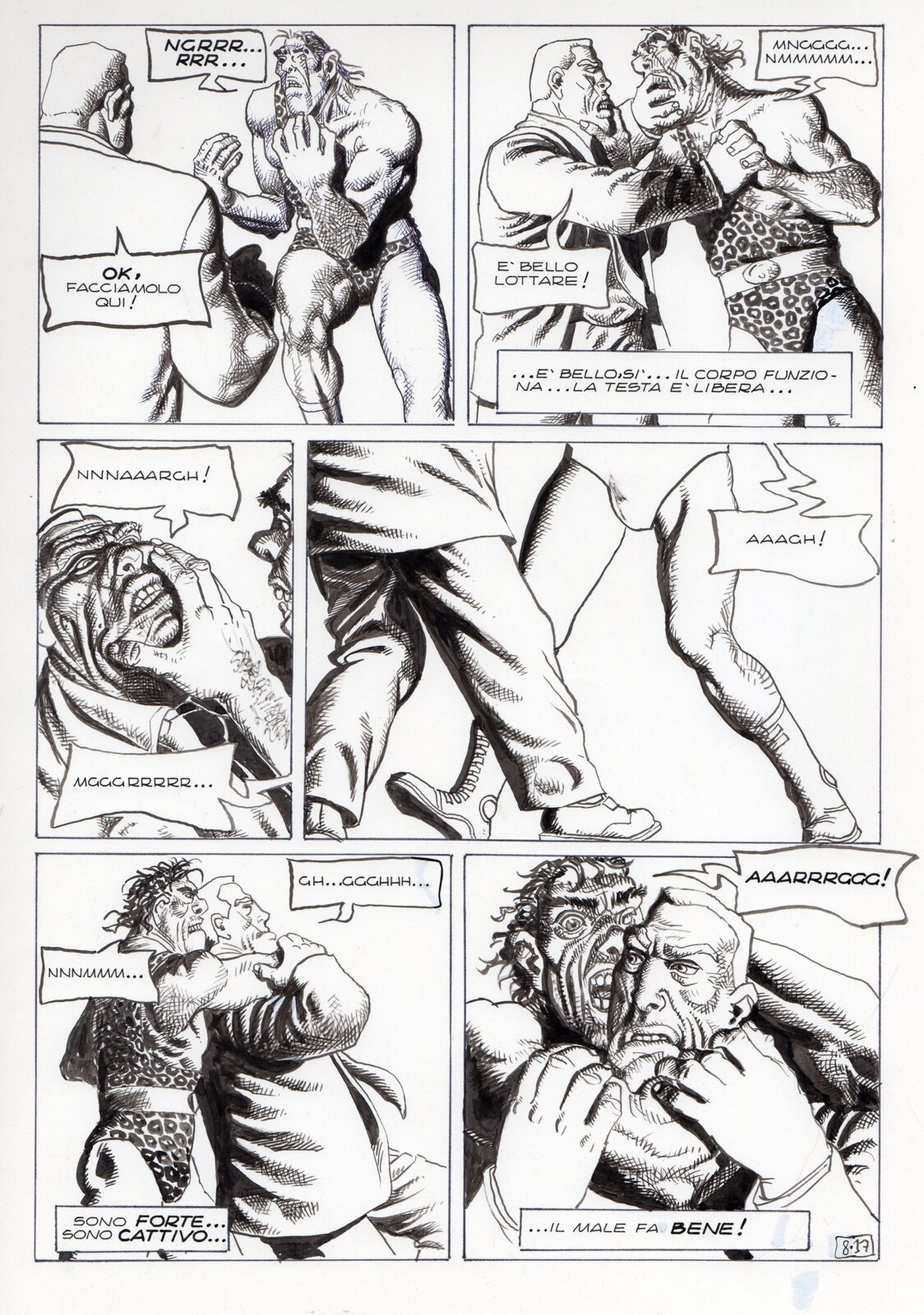 Di Giammarino Luigi (n. 1959) " Franky ". 1993. China su cartonciono. Cm 34,00 x 48,00. Opera integrale di 21 tavole pubblicata dalla rivista Splatter nel 1993