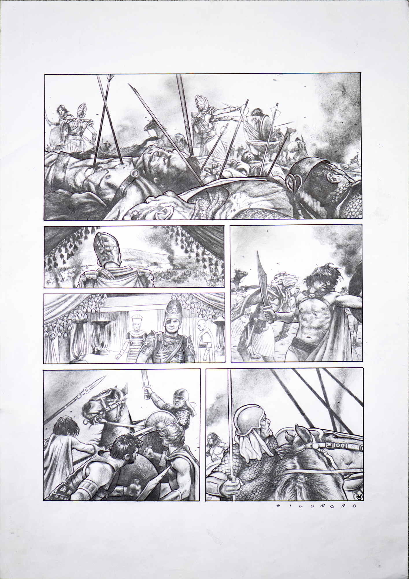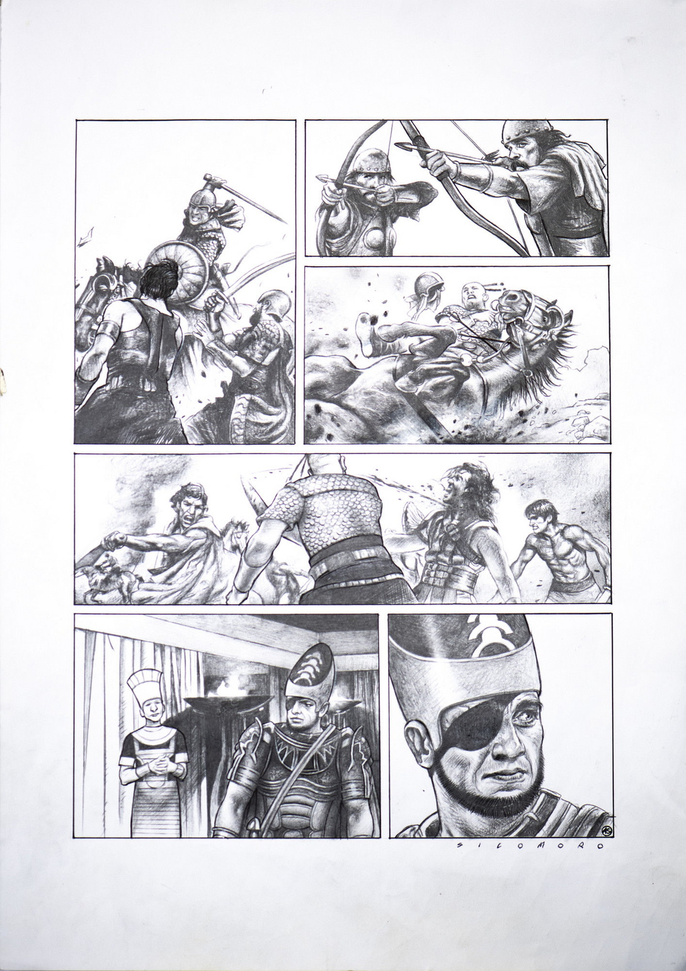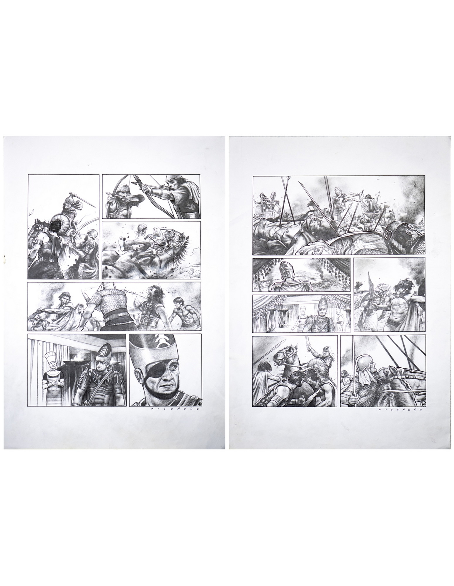 Sicomoro Eugenio "Les duex coeurs de L'Egypte" . 2017. grafite su carta. Cm 30,00 x 42,00. 2 tavole dalla meravigliosa serie pubblicata in Francia da Delcourt in tre volumi dal 2018 al 2022
