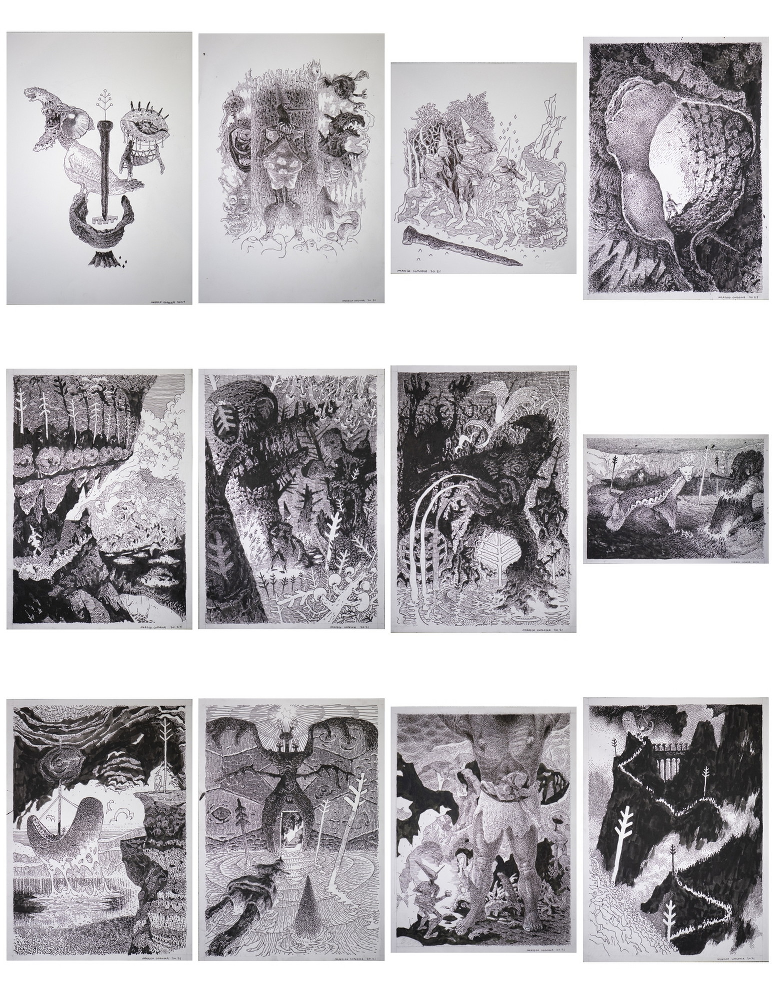 CORONA MARCO "PINOCCHIO ALL'INFERNO". 2021. China su carta. Cm 29,50 x 42,00. LOTTO DI DODICI TAVOLE .