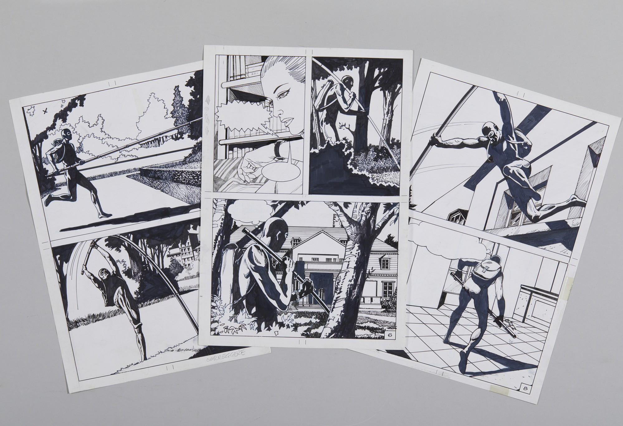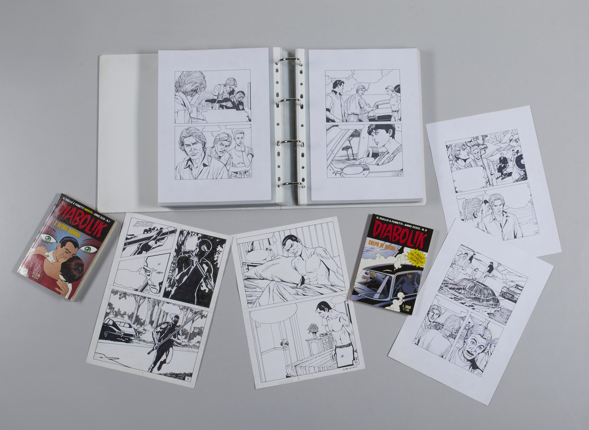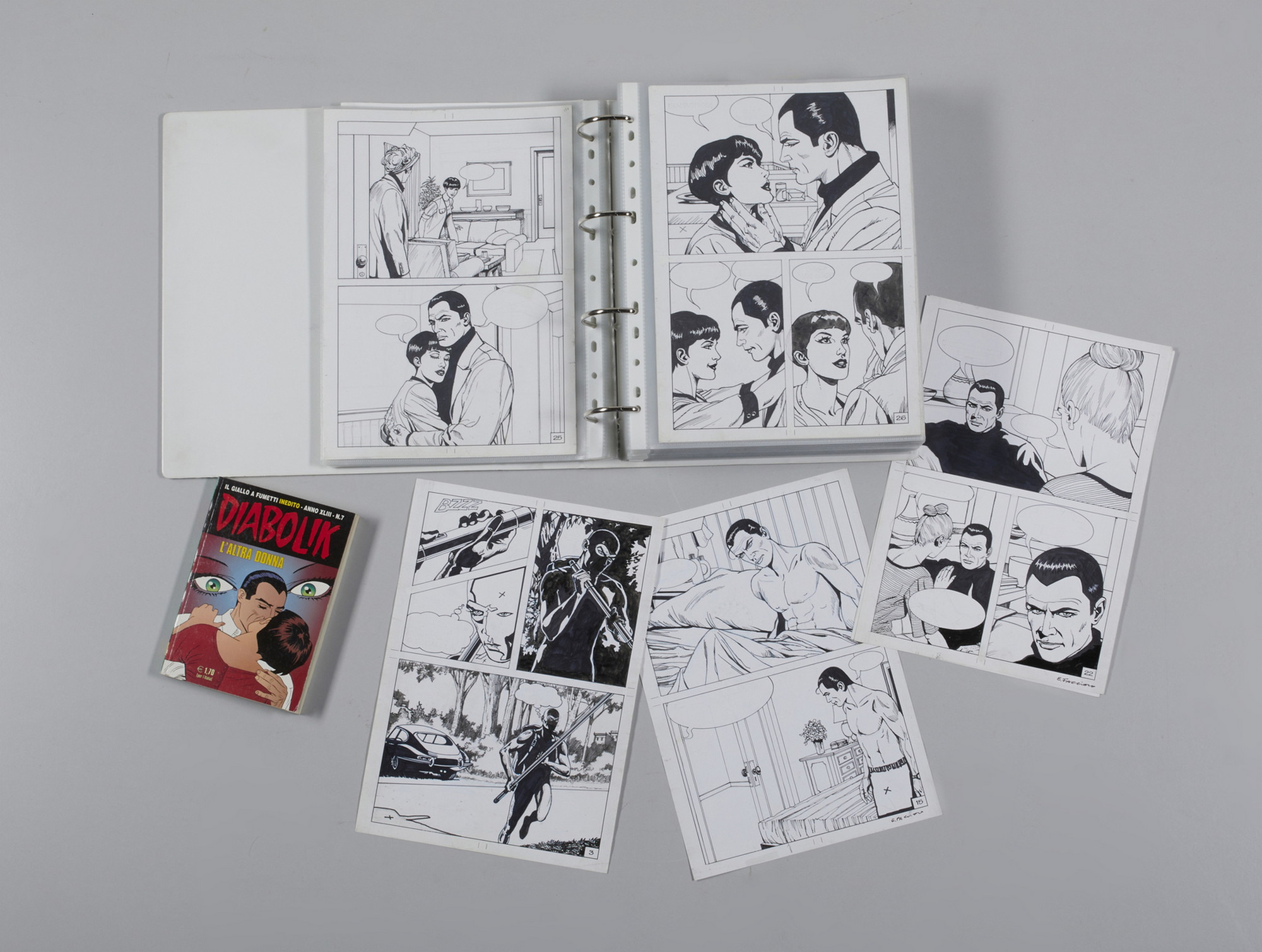 FACCIOLO VINCENZO Opere da "Diabolik- l'altra donna"Anno: XLIII - 2004Soggetto: Emilio Marco Catellani e Mario GomboliSceneggiatura: Patricia MartinelliMatite: Enzo FaccioloChine: Enzo FaccioloCopertina: Sergio e Paolo Zaniboni. 2004. China su carta. Cm 21,00 x 30,00. N. 105 tavole da "Diabolik- l'altra donna", anno 2004, luglio n.7