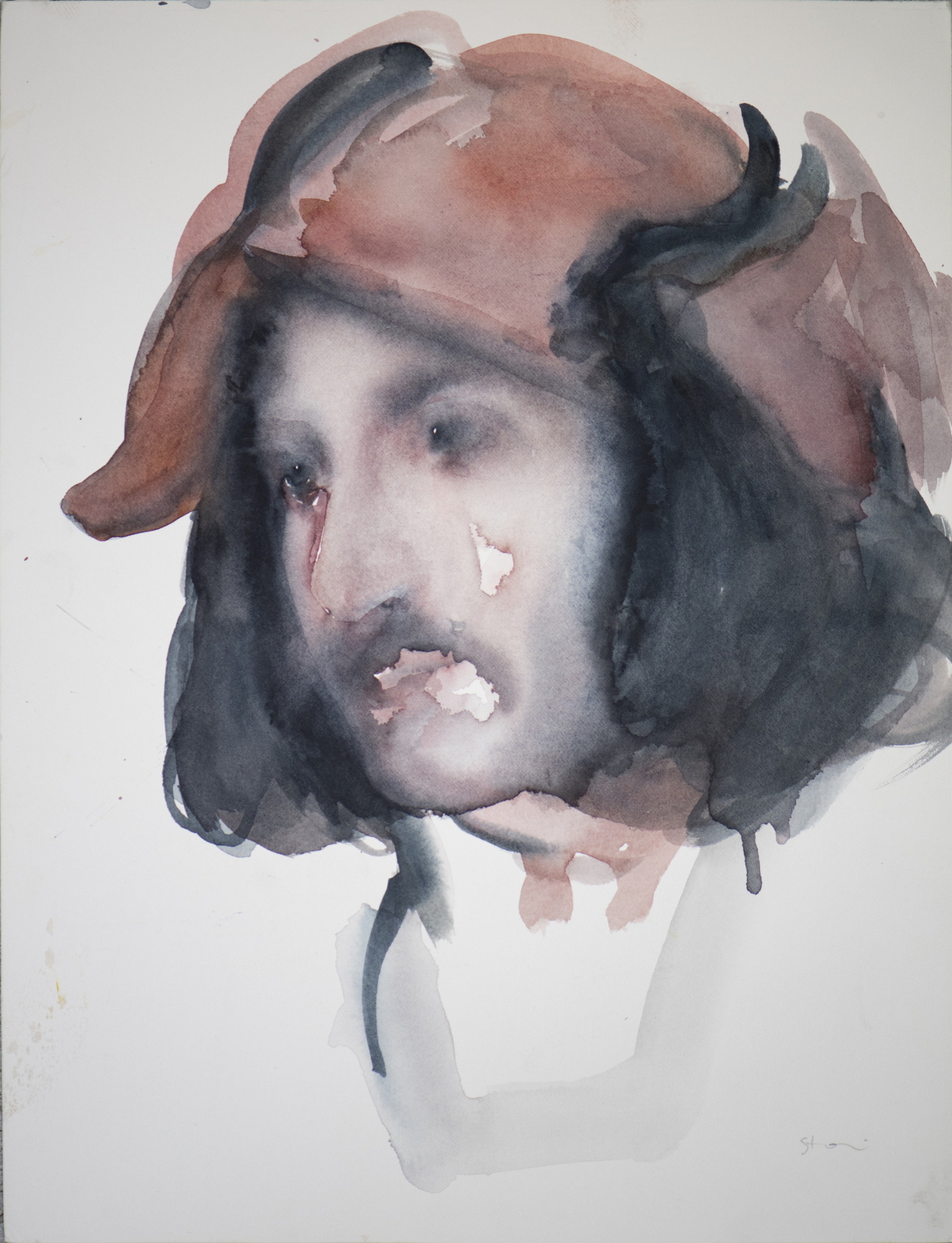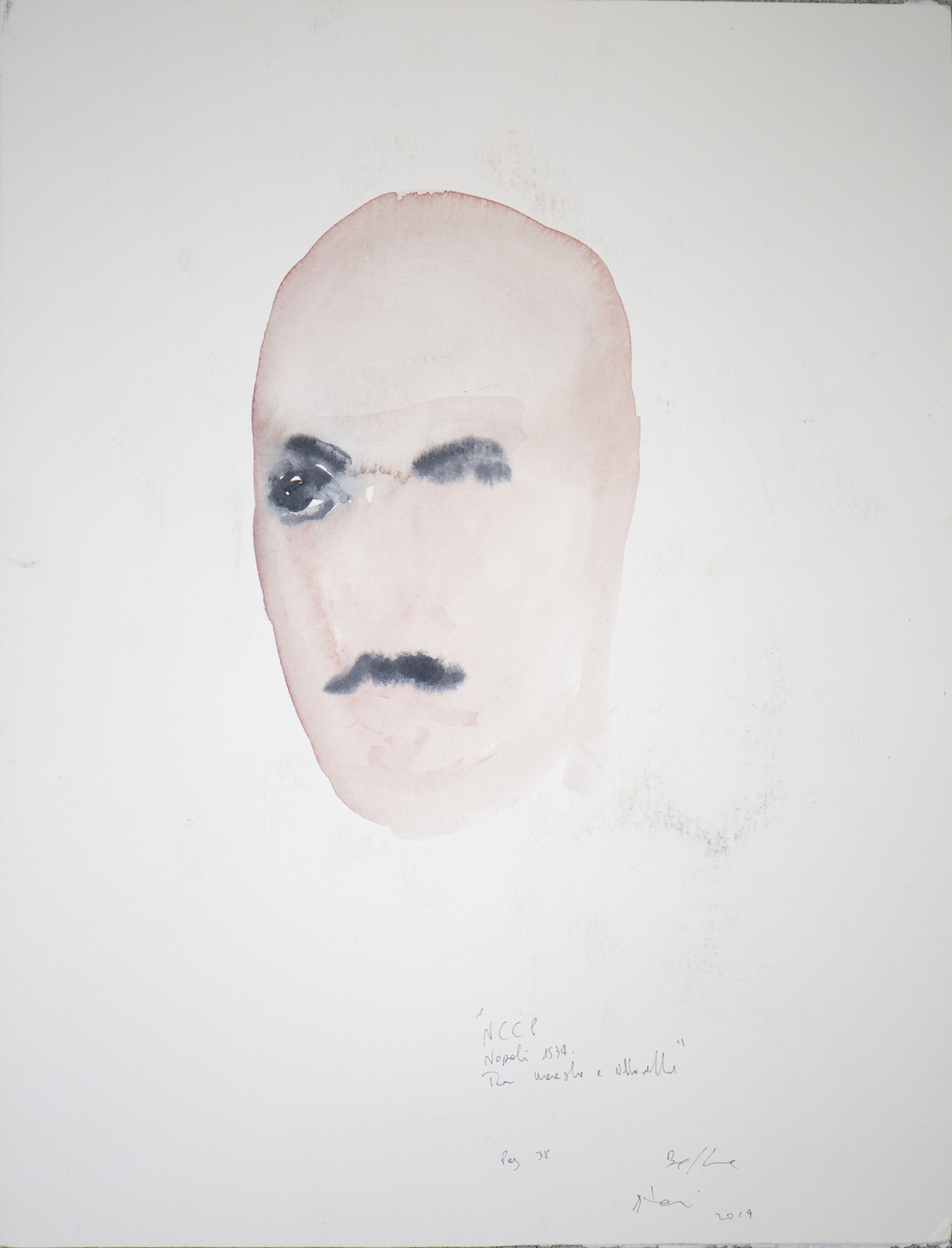 STASI BEPPE "Ritratto". 2019. inchiostro e acquerello su carta cotone. Cm 38,50 x 28,00. Opera realizzata per illustrare il disco NCCP NAPOLI 1534 "Tra moresche e villanelle" Targa Tenco album in dialetto 2020.