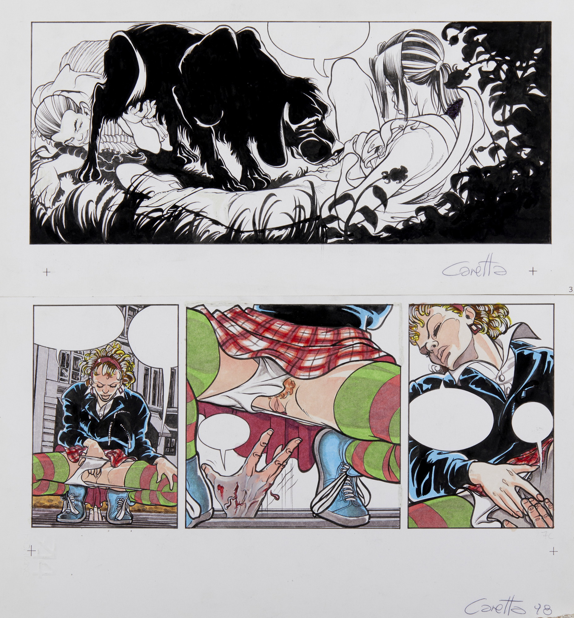 CARETTA FERNANDO "Senza titolo". 1998. Tecnica mista e disegno su carta. Cm 33,00 x 17,00. 2) 18x32 cm