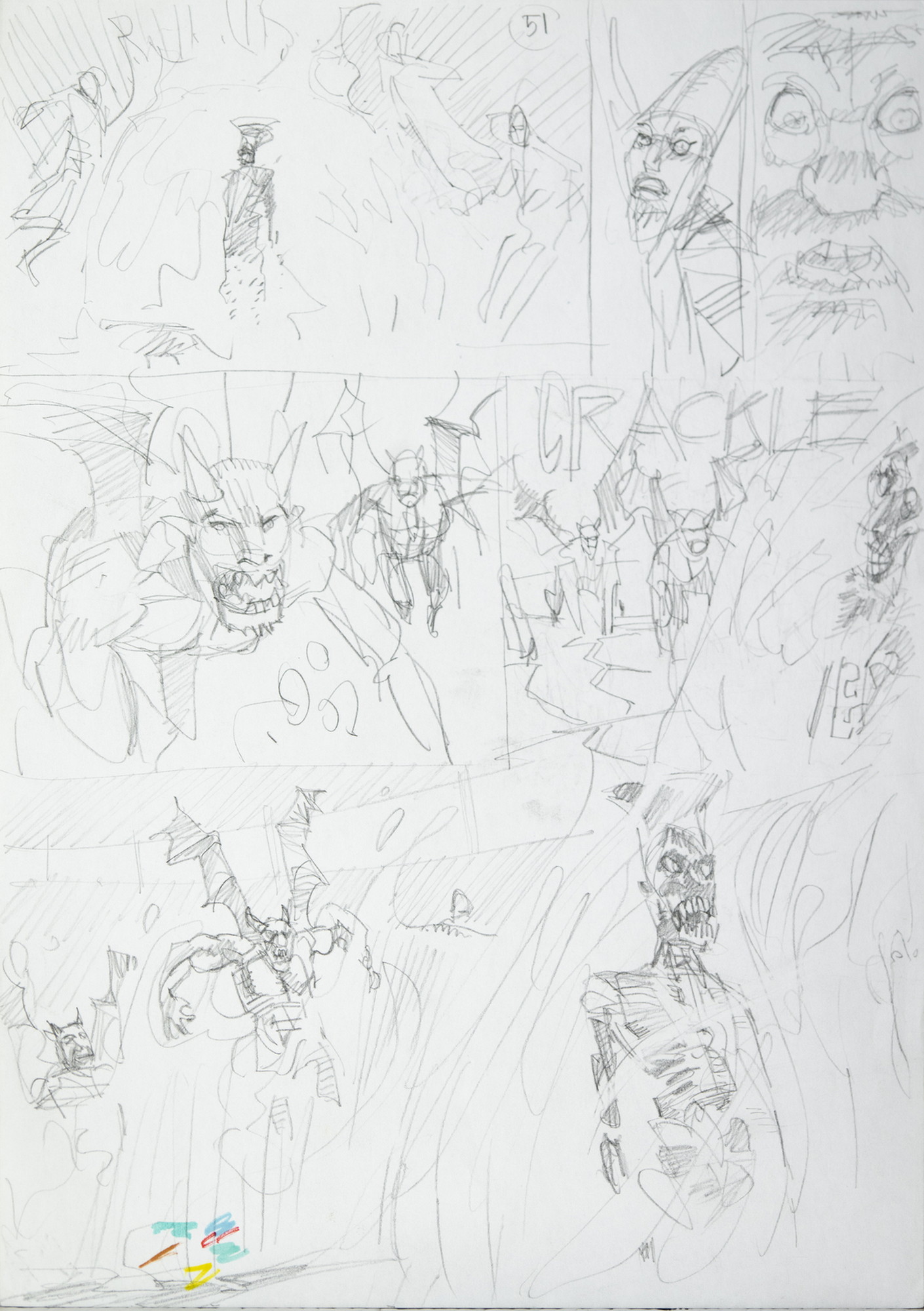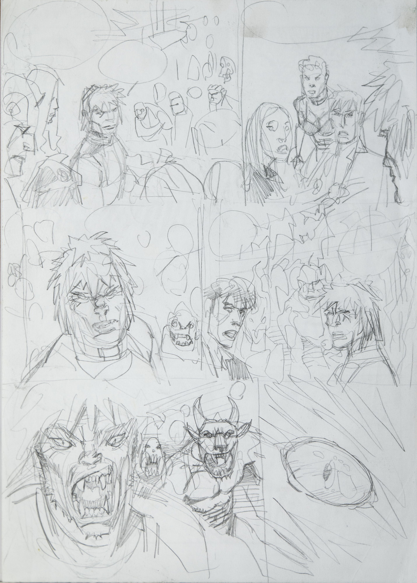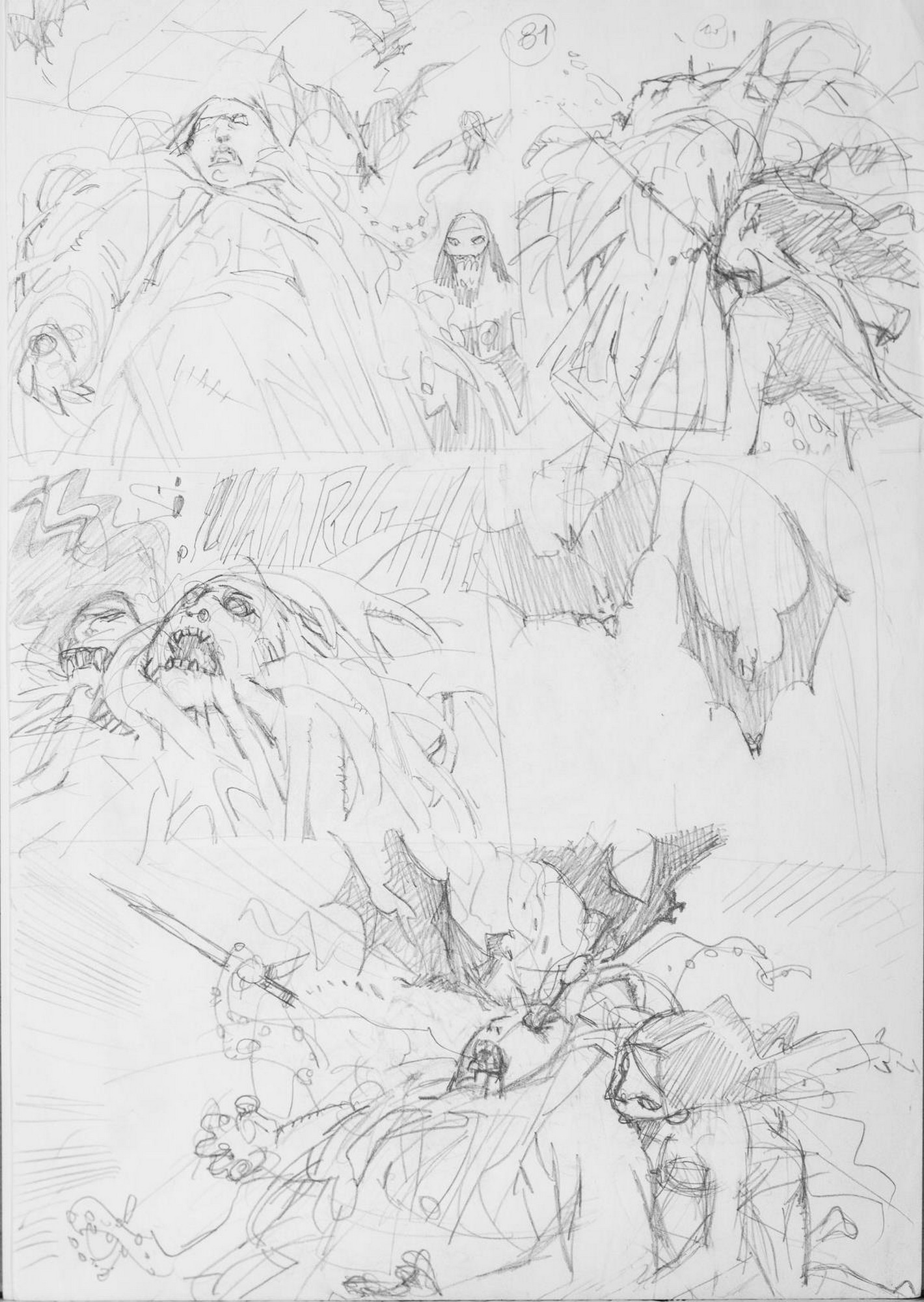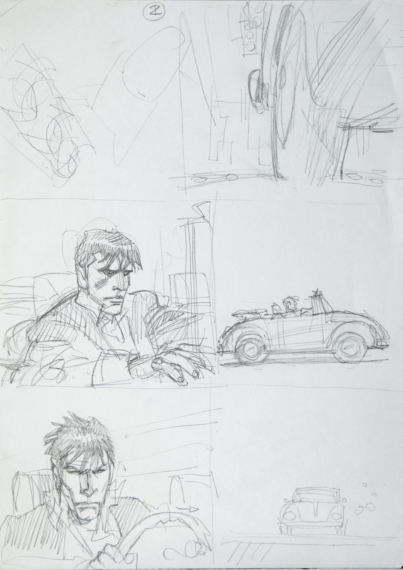 Piccatto Luigi La lunga notte-Dylan Dog. 2006. grafite su carta. Cm 21,00 x 30,00. 4 tavole preparatorie e di studio ( esattamente la n 2, 51 e 81 per Dylan Dog gigante 2006 e altra tavola sempre per Dylan Dog Gigante 2006)