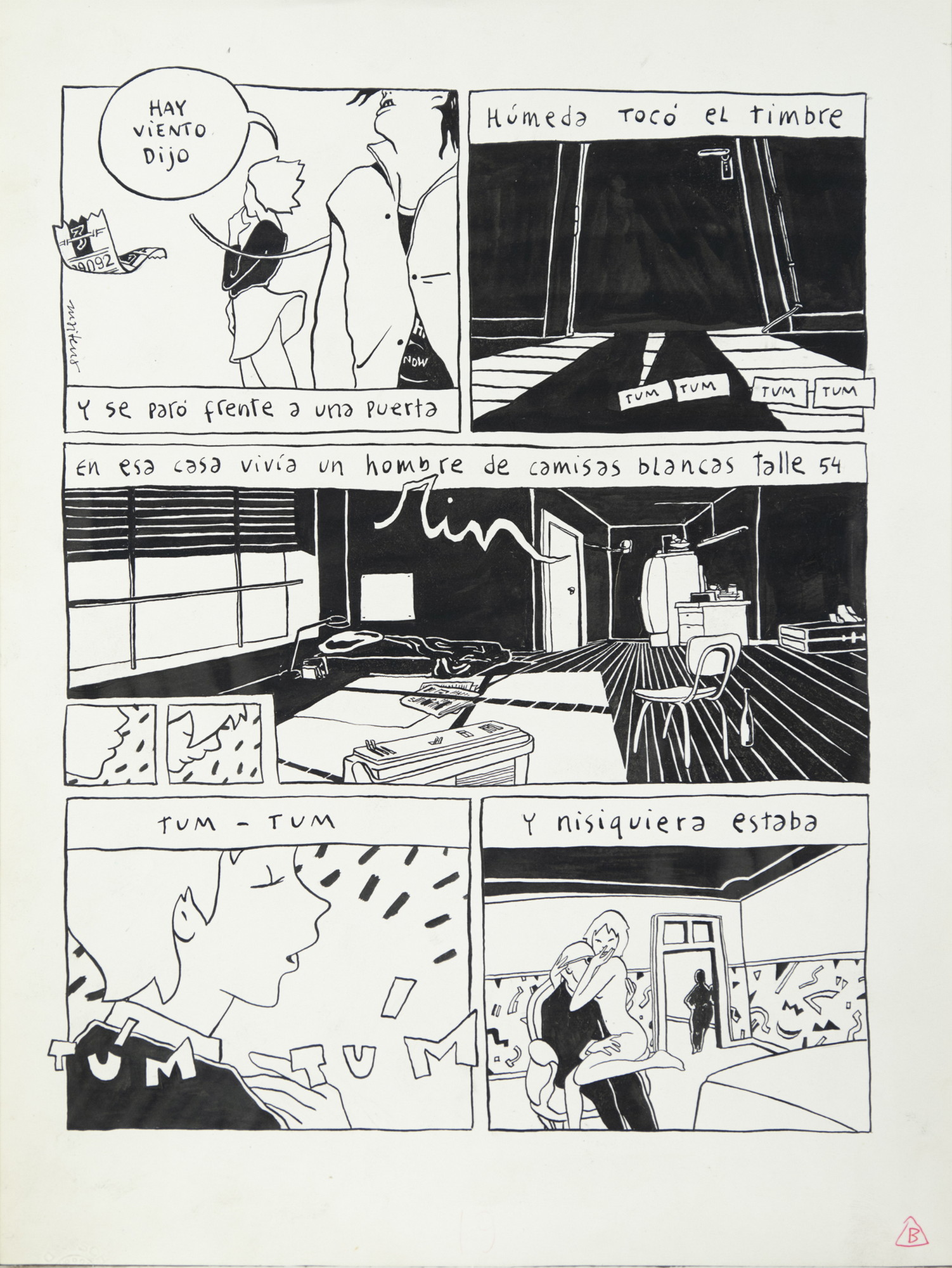 Burundarena Maitena Haja viento dijo. 1988. inchiostro di china e pennello su cartoncino F4. Cm 26,00 x 33,00. Tavola della celebre illustratrice e fumettista argentina del Barrio Chino e delle Mujeres Alteradas. Molto probabilmente realizzata per la rivista Fierro.