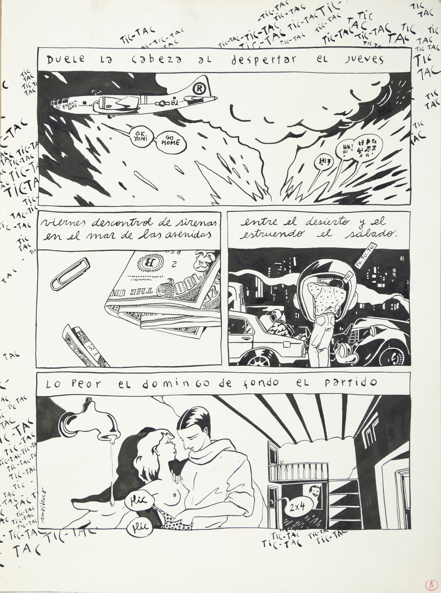 Burundarena Maitena Duele la cabeza al despertar ej jueves. Molto probabilmente realizzata per la rivista Fierro. 1988. China su cartoncino. Cm 26,00 x 33,00. Tavola della celebre illustratrice e fumettista argentina del Barrio Chino e delle Mujeres Alteradas.