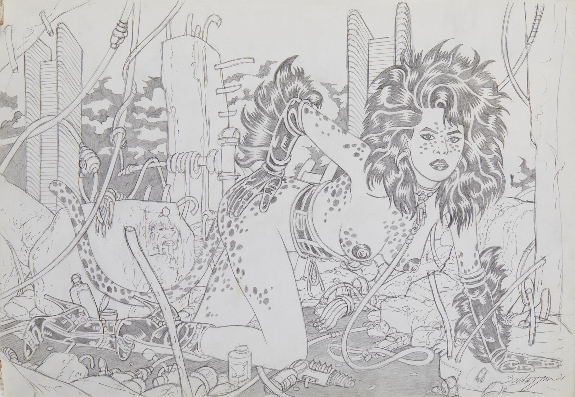 Baldazzini Roberto (n. 1958) "Felina". disegno, acquerello, matita, indian ink. Cm 48,00 x 33,00. Firma in basso a dx.