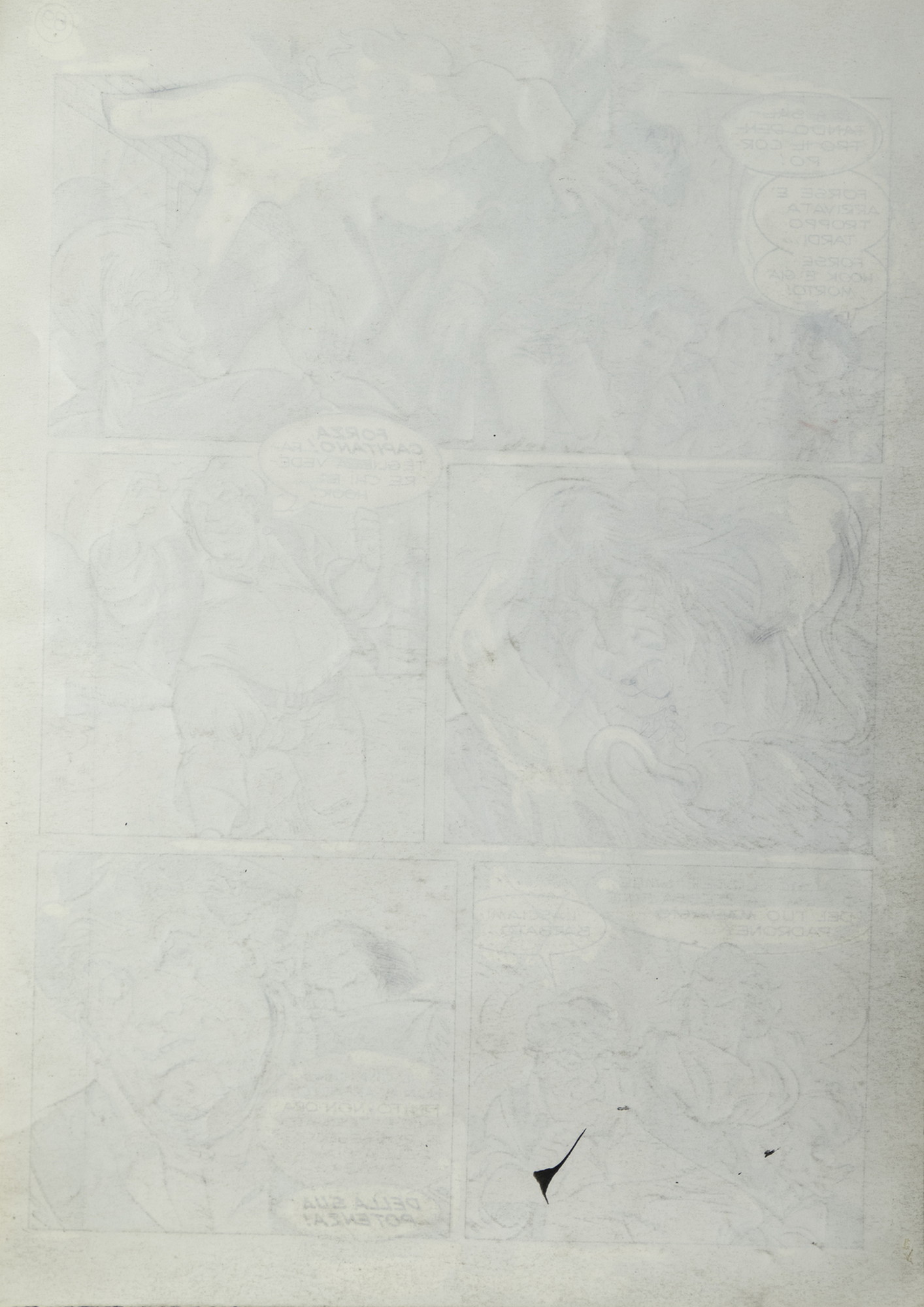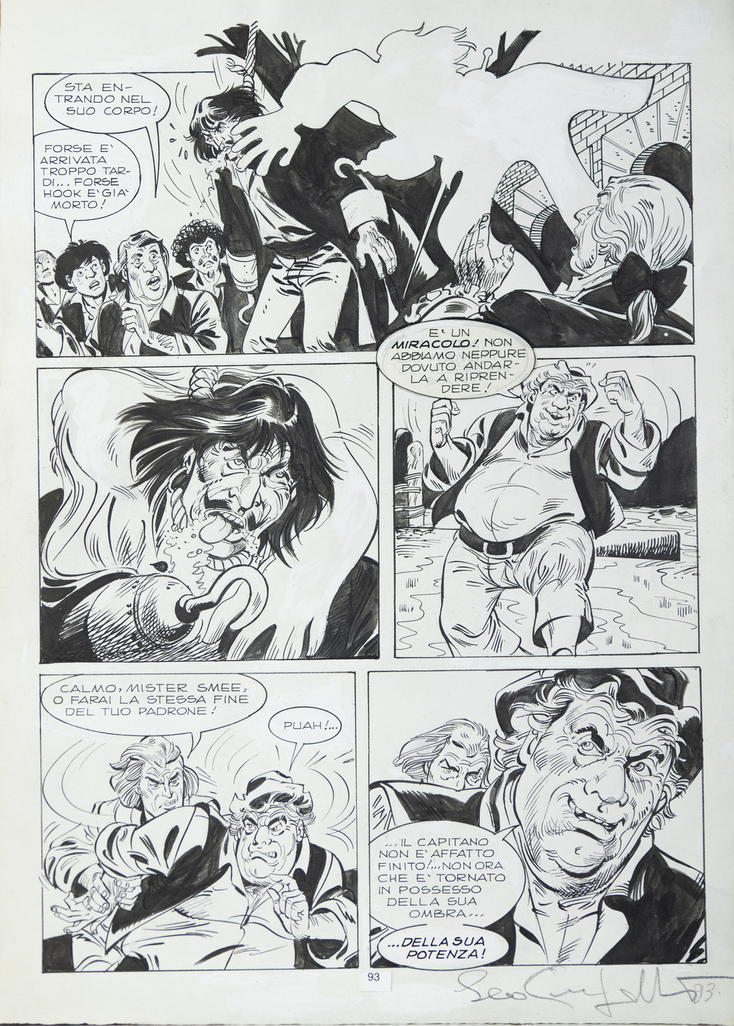 Cimpellin Leo Capitain Hook. China su carta. Cm 36,00 x 26,00. 1 Tavola del personaggio di Capitan Hook, pagina 93, firmato a matita in basso a destra, più volte disegnato da Cimpellin per Martin Mystere come ad esempio ne I misteri di Londra o La terra che non c'è.