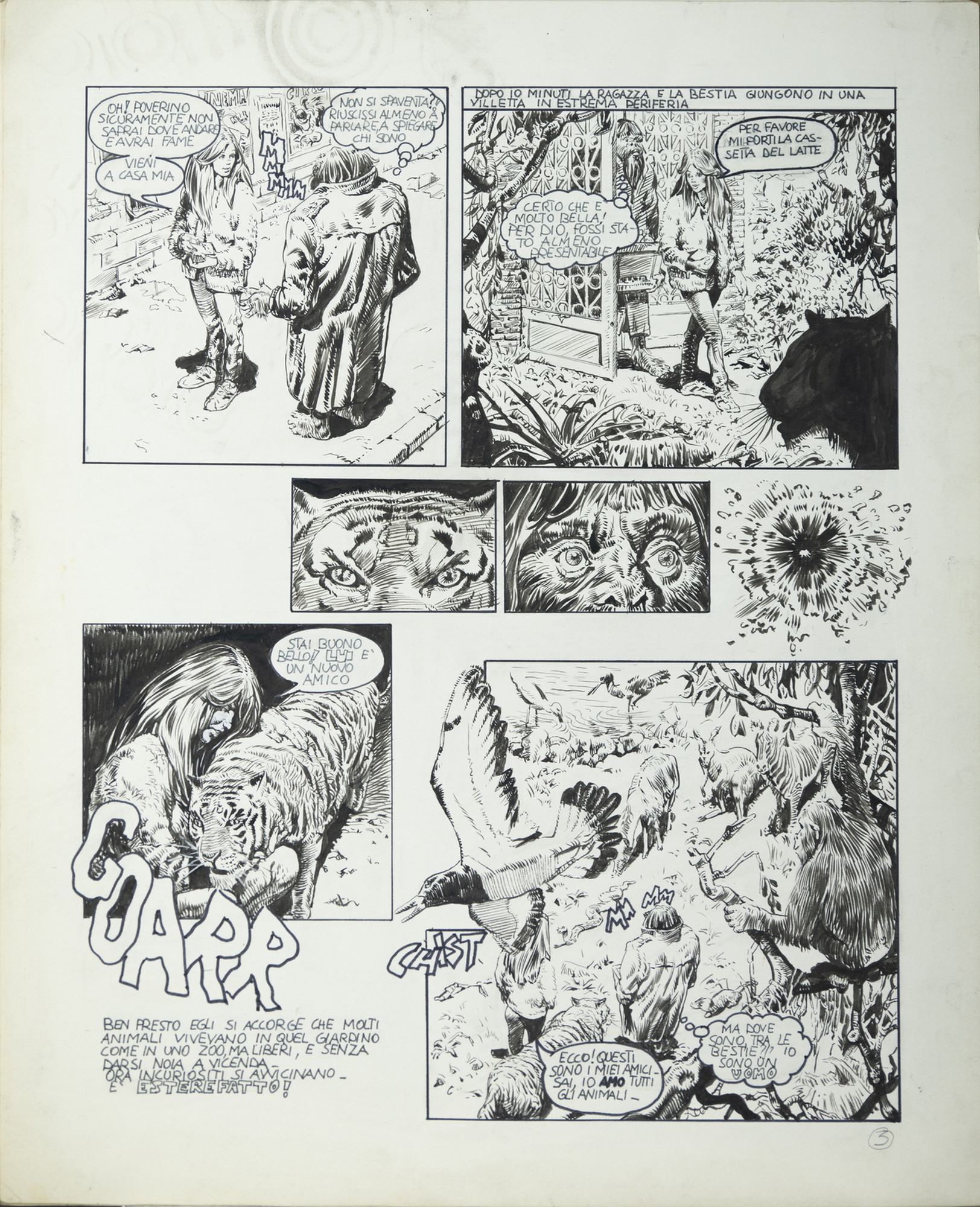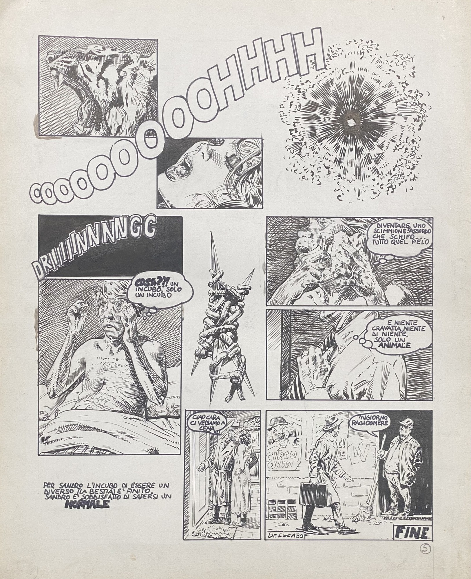 De Luca Gianni L'IncuboOpera firmata. 1980. China su carta. Cm 41,00 x 34,00. Tre tavole straordinarie di una leggenda dell'arte disegnata; colui che ha attraversato il 900 di questo ambito di ricerca e ne ha rivoluzionato il linguaggio tanto da diventare fonte di ispirazione anche per autori come Frank Miller, David McKean, Bill Sienkiewicz. Dai suoi esordi su Il Vittorioso, passando per Il Giornalino fino a Il commissatio Spada, la Trilogia shakespeariana, La freccia nera, gli adattamenti per Il giornalino di Gian Burrasca.